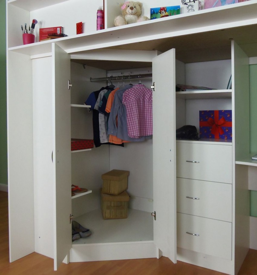 - Vous devez stocker des jouets, des choses et d'autres articles dans des armoires. Il y a une division claire entre les armoires pour jouets pour enfants et les armoires pour vêtements. Garder tout au même endroit est inacceptable.