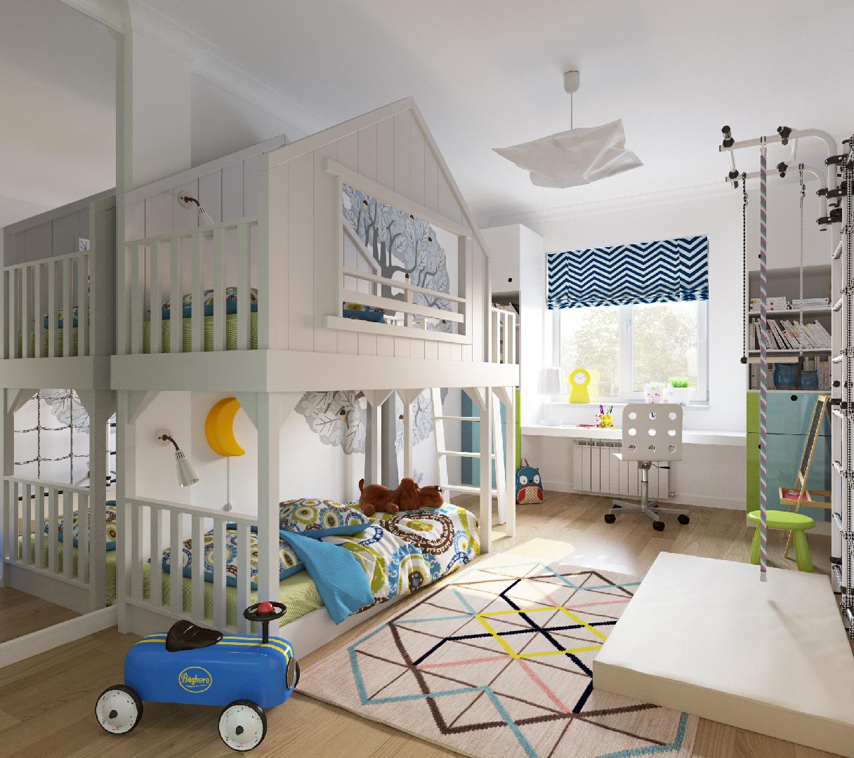 Pour créer le confort et le confort, des zones séparées pour le frère et la sœur peuvent être distinguées.