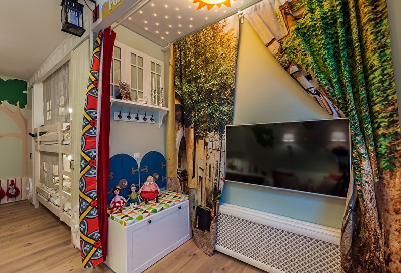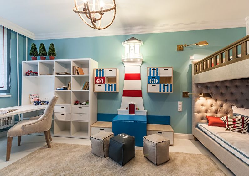 Certains appartements ou Khrouchtchev avec un manque de chambre séparée pour deux enfants, obligent les parents à équiper une chambre. Un intérieur bien conçu reflétera les intérêts du garçon et de la fille.