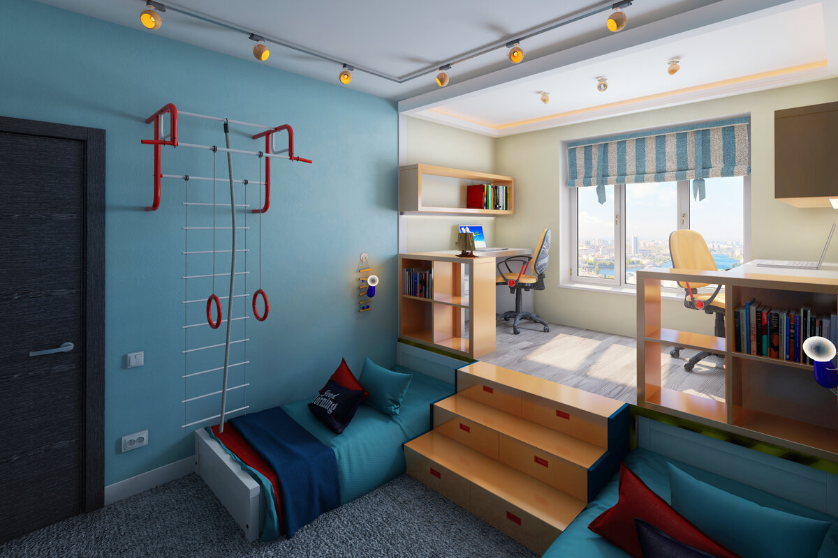 Une palette de couleurs harmonieuses, ainsi qu'un mobilier bien agencé transformeront même une petite surface en une chambre d'enfant multifonctionnelle.