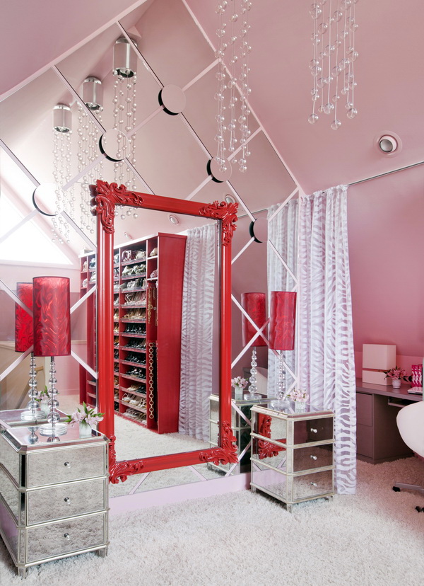 Lors de la planification d'une chambre à coucher, il ne faut pas oublier que les filles y dorment non seulement, étudient, jouent, communiquent, une partie importante de la vie, le stade de la croissance et la formation des personnages. Par conséquent, des éléments intérieurs clairs et soignés sont choisis, la pièce devient libre, lumineuse.