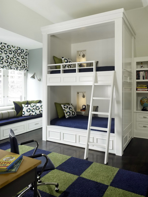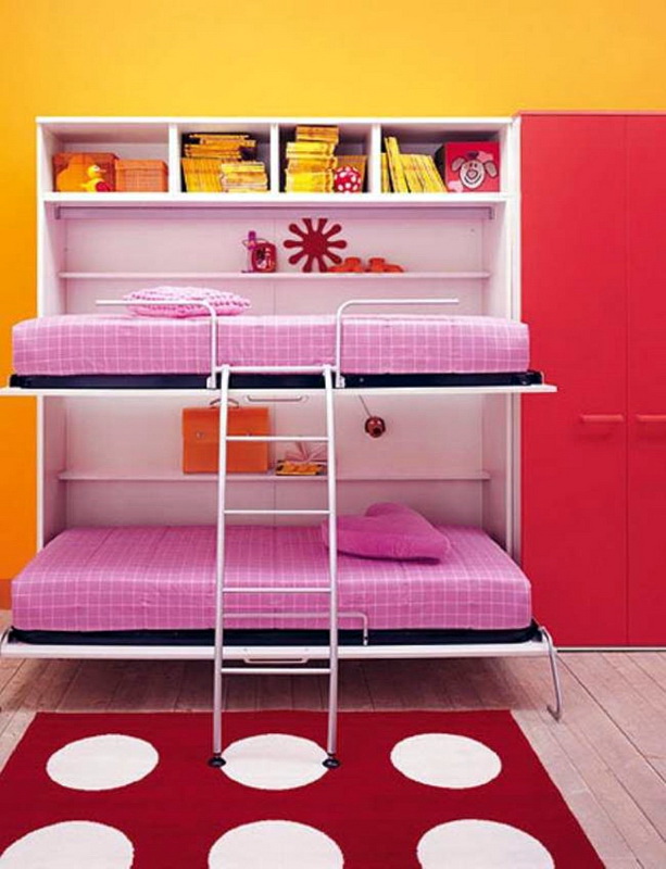- Zone de loisirs - les lits sont placés à différents endroits, si la zone est petite, il est possible d'installer des structures superposées, coulissantes ou coulissantes, selon l'âge.