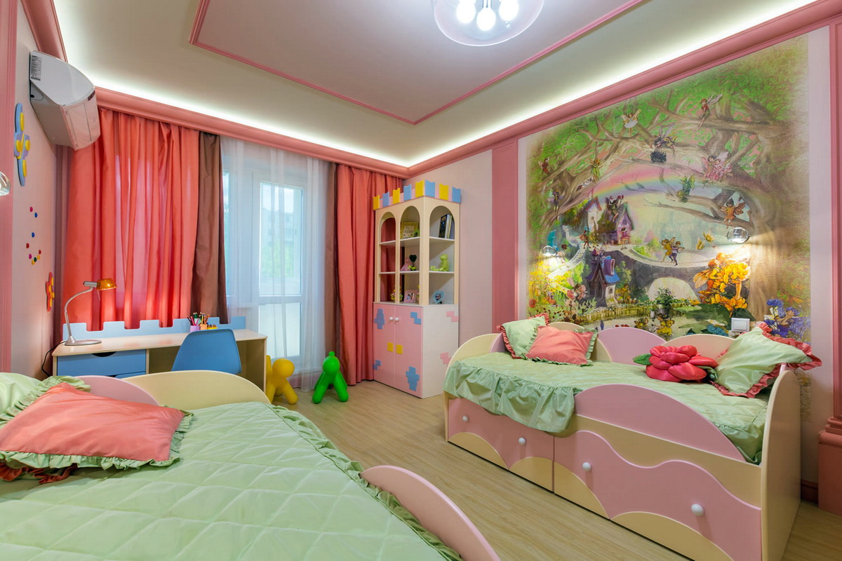 Avoir plusieurs enfants dans la famille est merveilleux. Surtout les sœurs sont les assistantes de la mère, des copines. Si vous devez habiter dans la même pièce, il est obligé de vous apporter à la fois un confort psychologique. Les caractéristiques du caractère, le tempérament, les caractéristiques de la vision de l'espace personnel sont prises en compte. Il est nécessaire de prévoir le zonage de la zone, en tenant compte des périodes de repos, de jeux, d'étude, de cours et d'accueil des invités. Il faut donner l'occasion de se cacher un peu, de se retirer. Tout doit correspondre aux besoins de chaque enfant, représentant un espace de vie harmonieux. La pièce doit être distinguée par un style unique, une fonctionnalité, une commodité. Les tâches complexes, cependant, sont tout à fait réalisables.