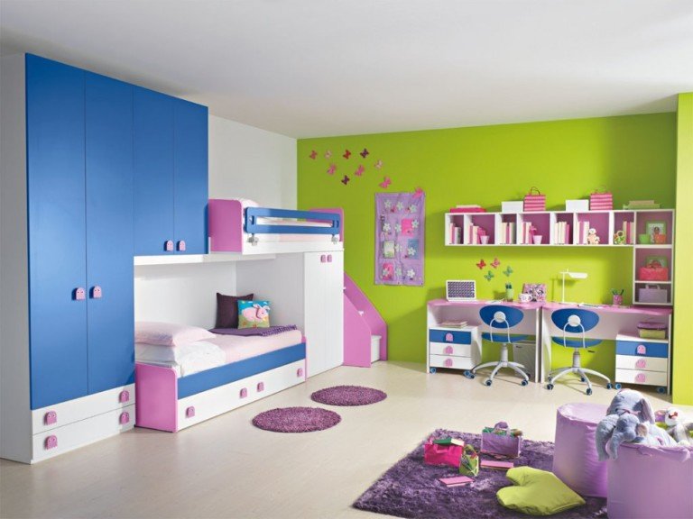 Le choix des couleurs prend en compte les goûts des deux futures hôtesses. Même au même âge, les préférences sont parfois différentes. Il faut accorder suffisamment de temps à cette question pour tenir compte de tous les souhaits. Avec un design classique ou moderne, vous pouvez choisir différentes variations de couleurs, compte tenu de l'influence des couleurs sur la psyché, le développement de l'enfant.