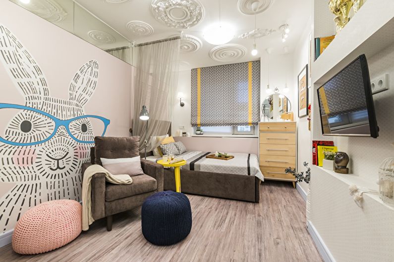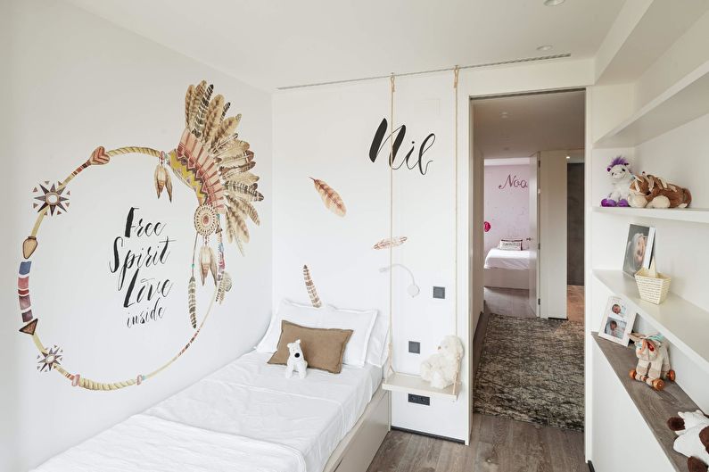 L'intérieur de la pépinière peut être sélectionné selon des croquis ou des photos de designers, en tenant compte de votre budget. Si l'appartement est fait dans un style moderne, même si la chambre des enfants y correspond. Le design et la chambre des enfants doivent être conçus sur le même thème.