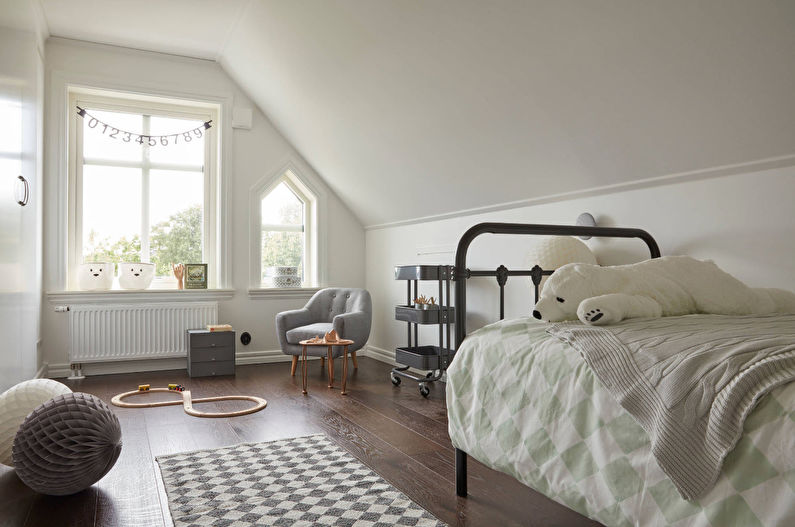 - Tenez compte des paramètres du lit en fonction de votre budget: il grandira rapidement avec une petite miette, il est beaucoup plus fonctionnel d'acheter un canapé - canapé. Si vous voulez changer la situation au fil du temps, prenez un lit - un grenier. De même, vous devez prendre des décisions avec d'autres éléments: une garde-robe - un coupé est parfait pour tous les âges, ce qui ne peut pas être dit d'une commode avec un dessin animé. Pensez à commander un casque avec des pièces ajustables en fonction de l'âge. L'achat sera payant - vous économiserez sur un sac de couchage dans quelques années;