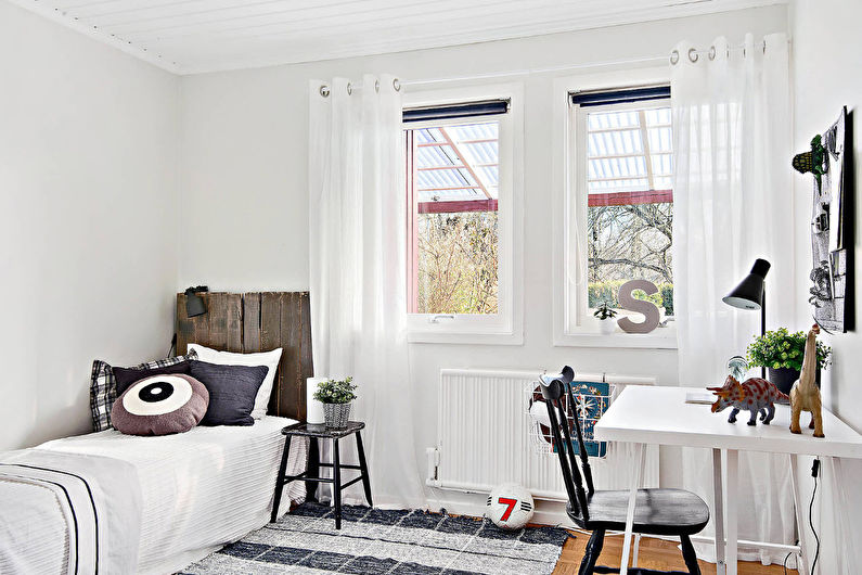 - L'éclairage doit être sélectionné correctement. Si la pièce est sur le côté ensoleillé de la maison, vous devez ajouter des luminaires et des luminaires. Pour les étudiants et les adolescents ont besoin d'une lampe de bureau sur le bureau, une applique pour une lecture facile au-dessus du lit;