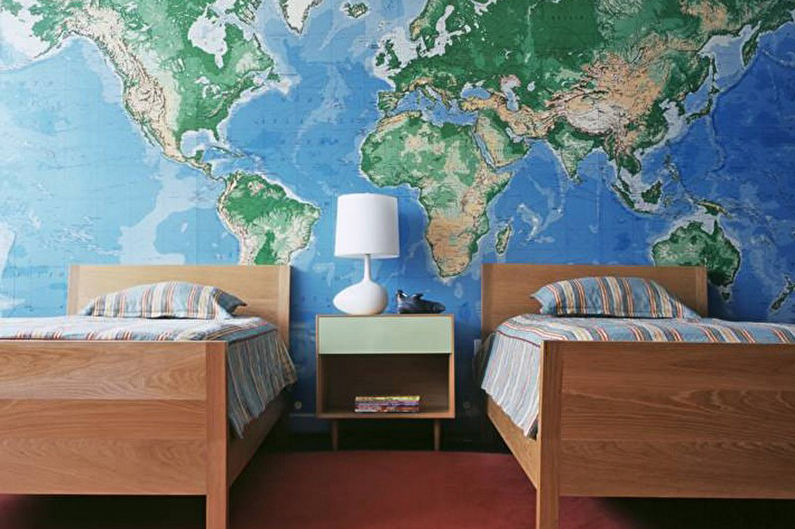 Une bonne solution consiste à installer un bureau à la fenêtre. Considérez où l'étudiant stockera des articles personnels, des cahiers, du bureau. Ajoutez un tableau noir, un globe, du satin avec une carte du monde. Placez tout au niveau des yeux. Les chambres d'enfants peuvent être équipées de manière intéressante et pratique; trouvez les photos correspondantes sur les sites Web des designers.