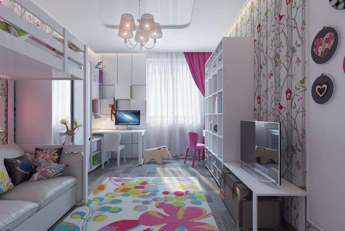 Une bonne idée de combiner le bois, le métal avec des nuances de bleu noble. Les chambres d'enfants design photo pour les filles peuvent être décorées en différentes couleurs - la gamme de papiers peints avec des imprimés floraux, des compositions de peinture pour les murs est énorme. Diluez le décor lumineux avec des éléments nus - il a l'air confortable et élégant.