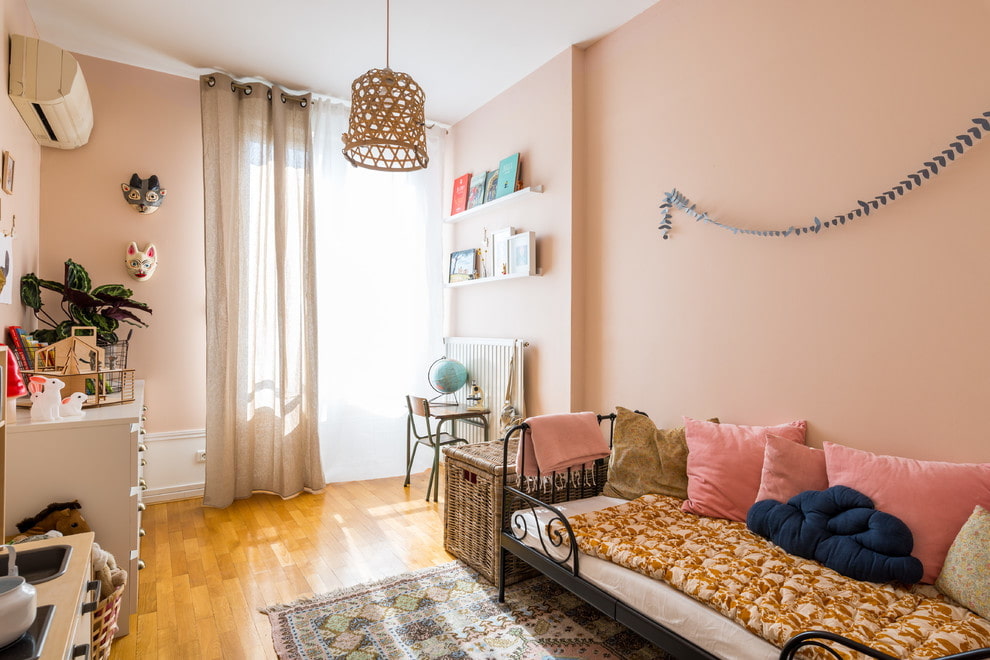 Les teintes roses restent traditionnelles, mais l'utilisation d'autres couleurs n'est pas exclue. La combinaison de différentes couleurs apportera enthousiasme et énergie à l'intérieur. Si la fille est très active, son humeur émotionnelle peut être ajustée avec la couleur.