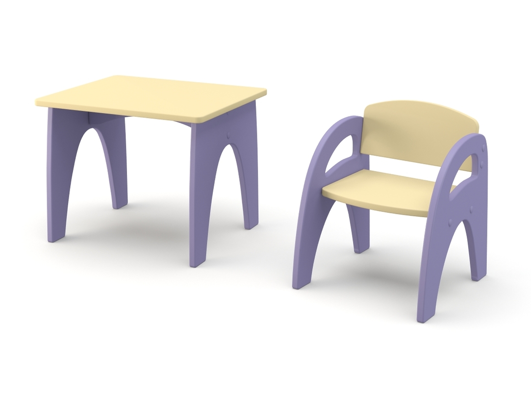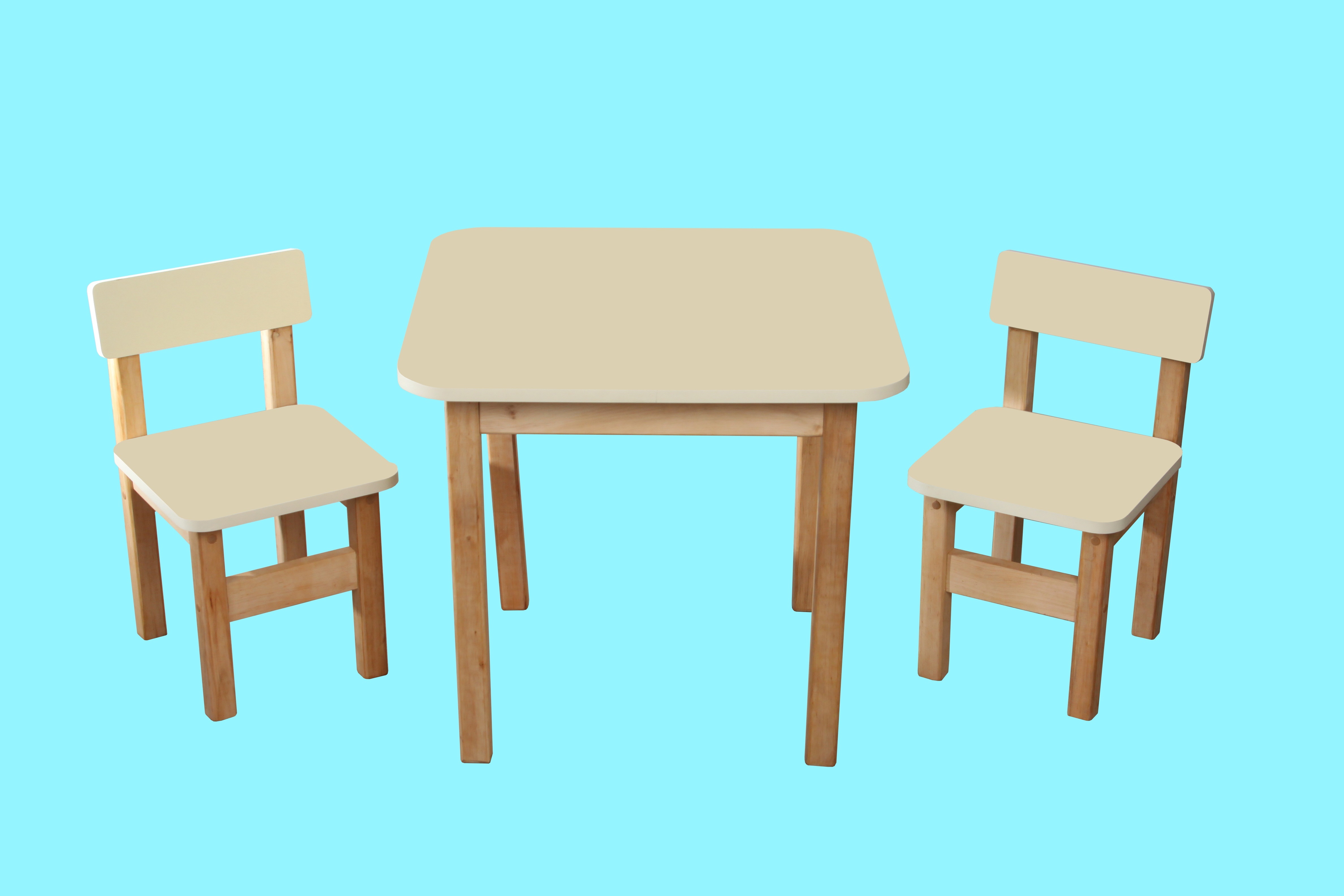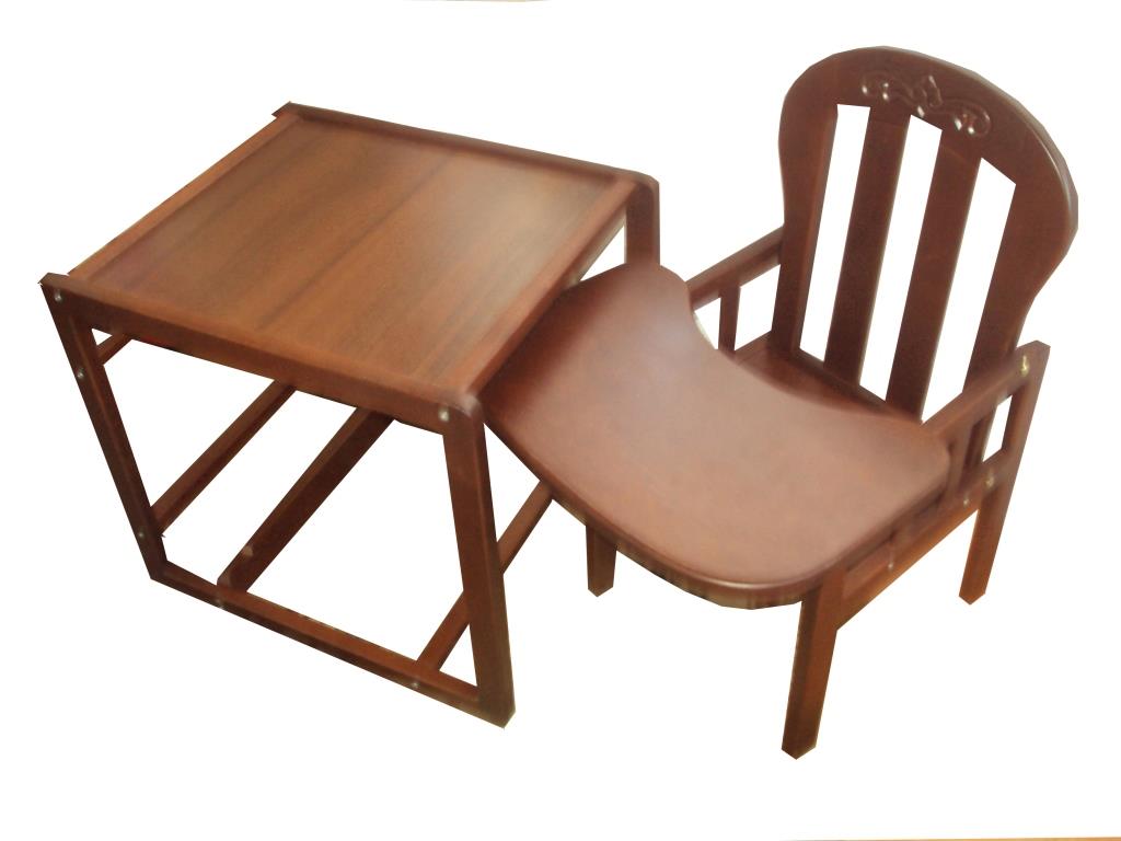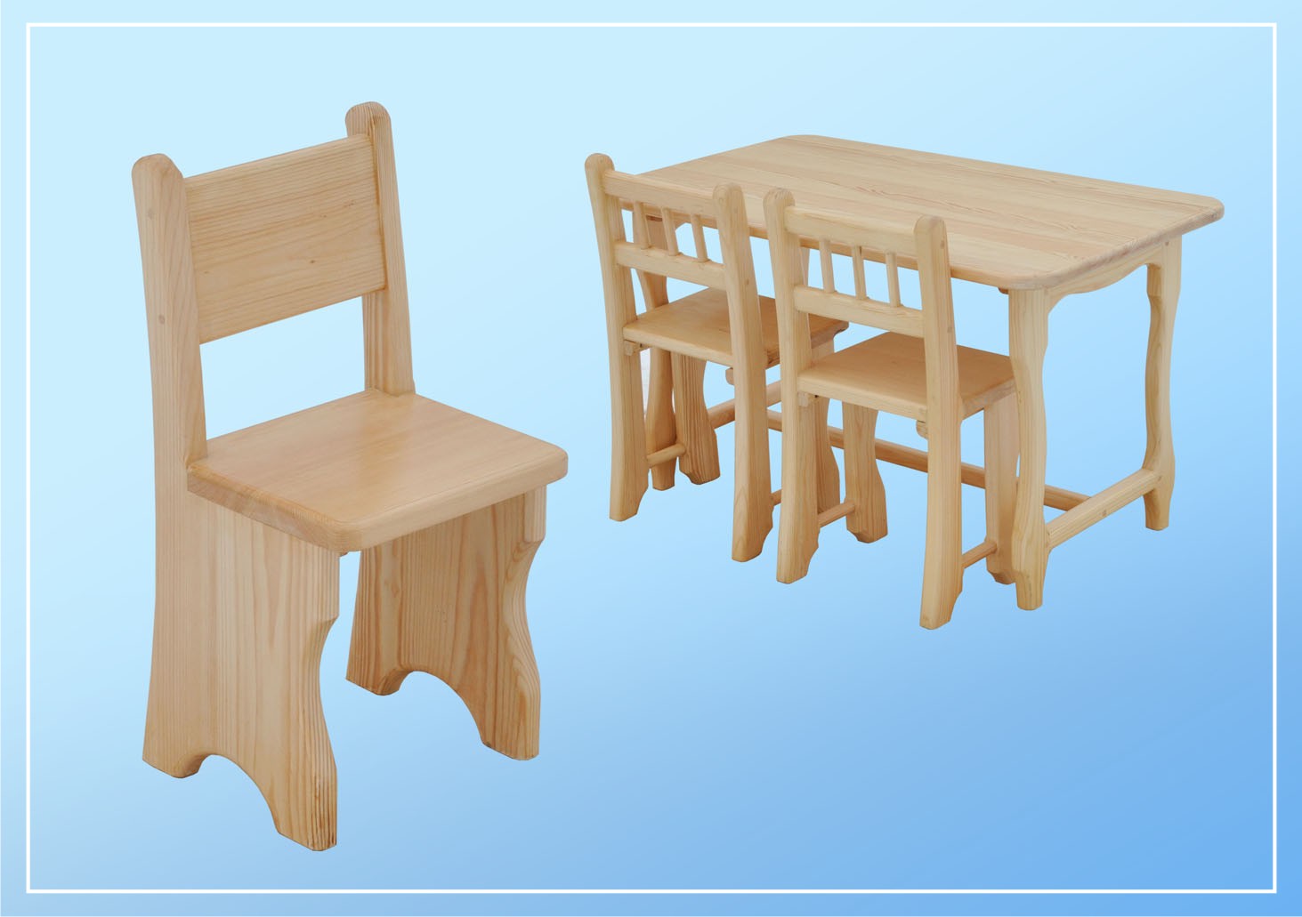 Une chaise haute et une table en bois peuvent être créées indépendamment.