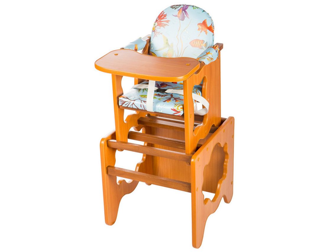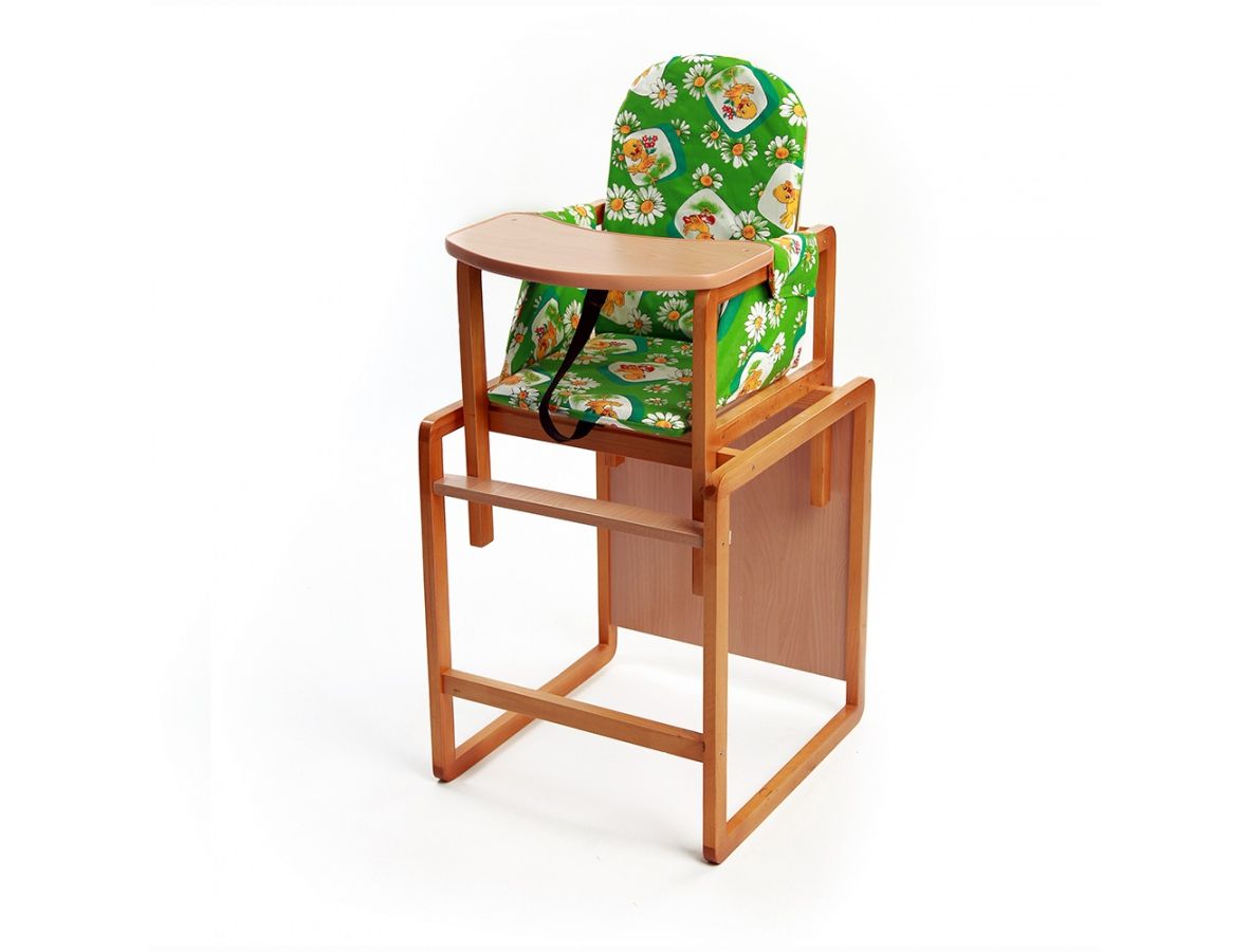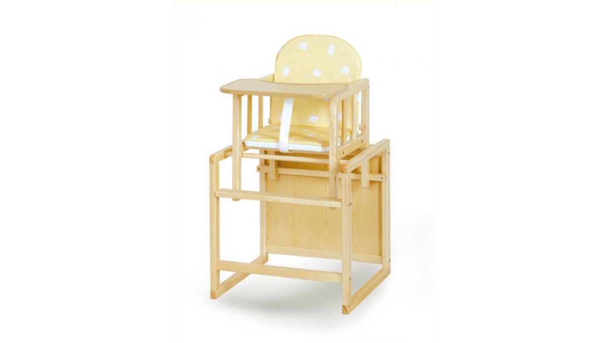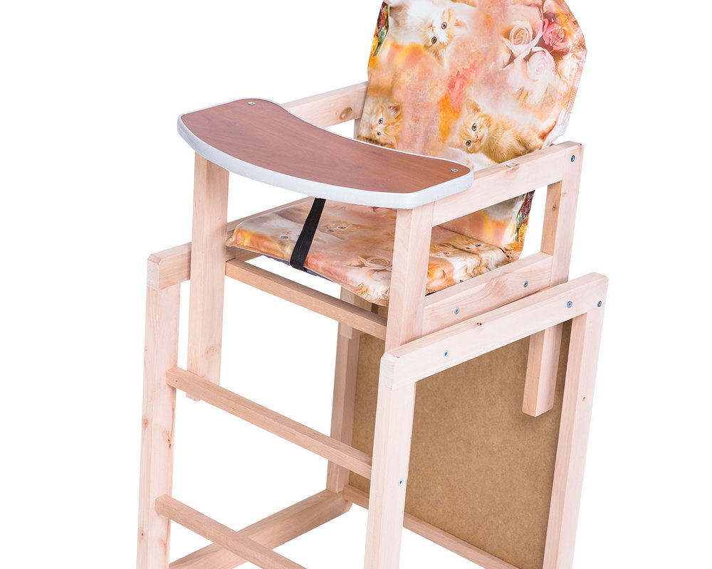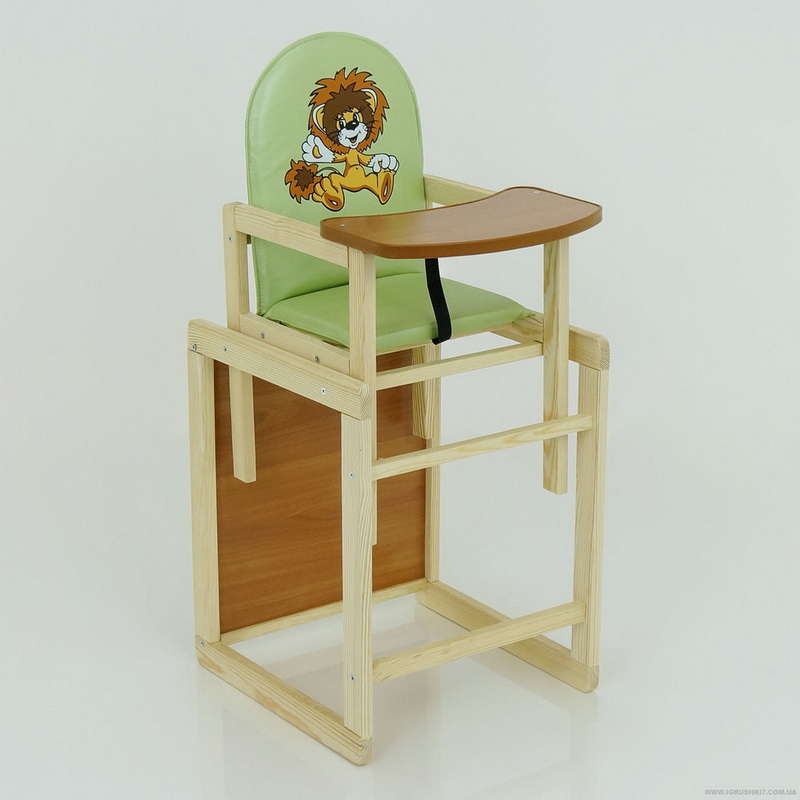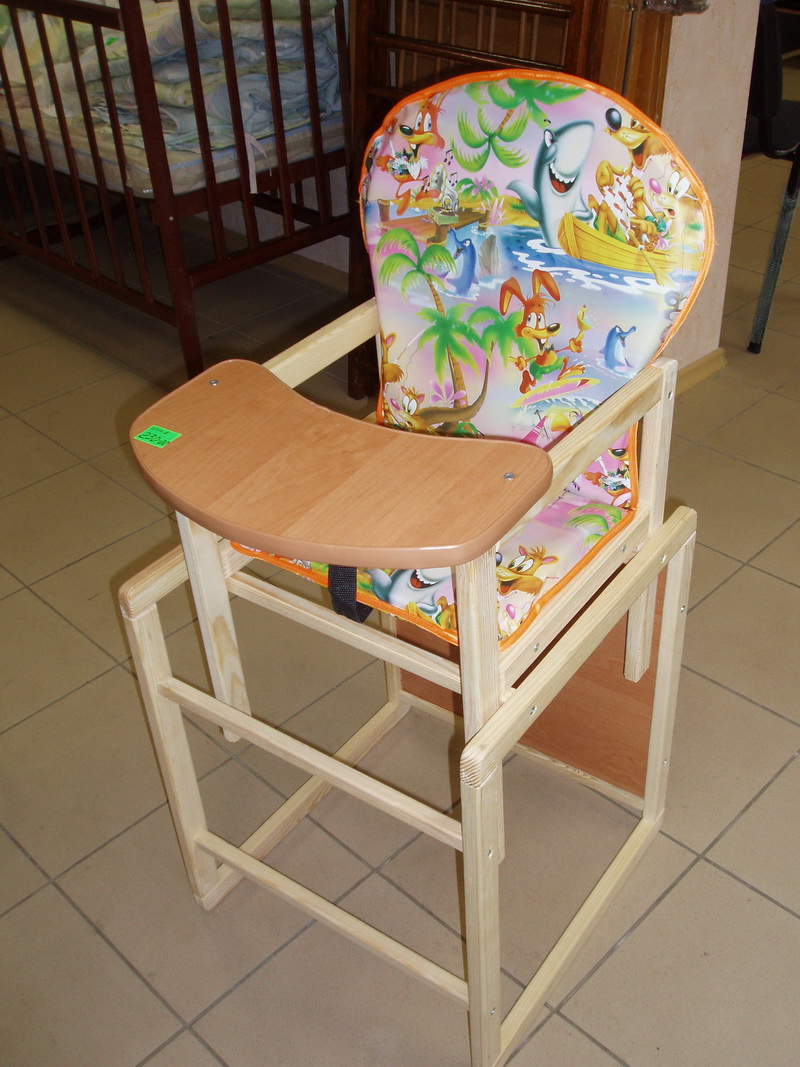 Le siège et le dossier d'une telle chaise sont recouverts d'un matériau doux, dont le tissu a généralement des motifs différents et est imprégné d'une composition hydrofuge. Il a des coins principalement aplatis pour augmenter la sécurité. L'arbre est recouvert d'un vernis incolore, résistant à l'humidité et aux chocs. Le plus souvent, il n'est pas réglable en hauteur. Convient aux enfants de un à sept ans. Il peut être utilisé à différentes fins: jeux, alimentation, entraînement, loisirs. C'est une meilleure alternative à la chaise.