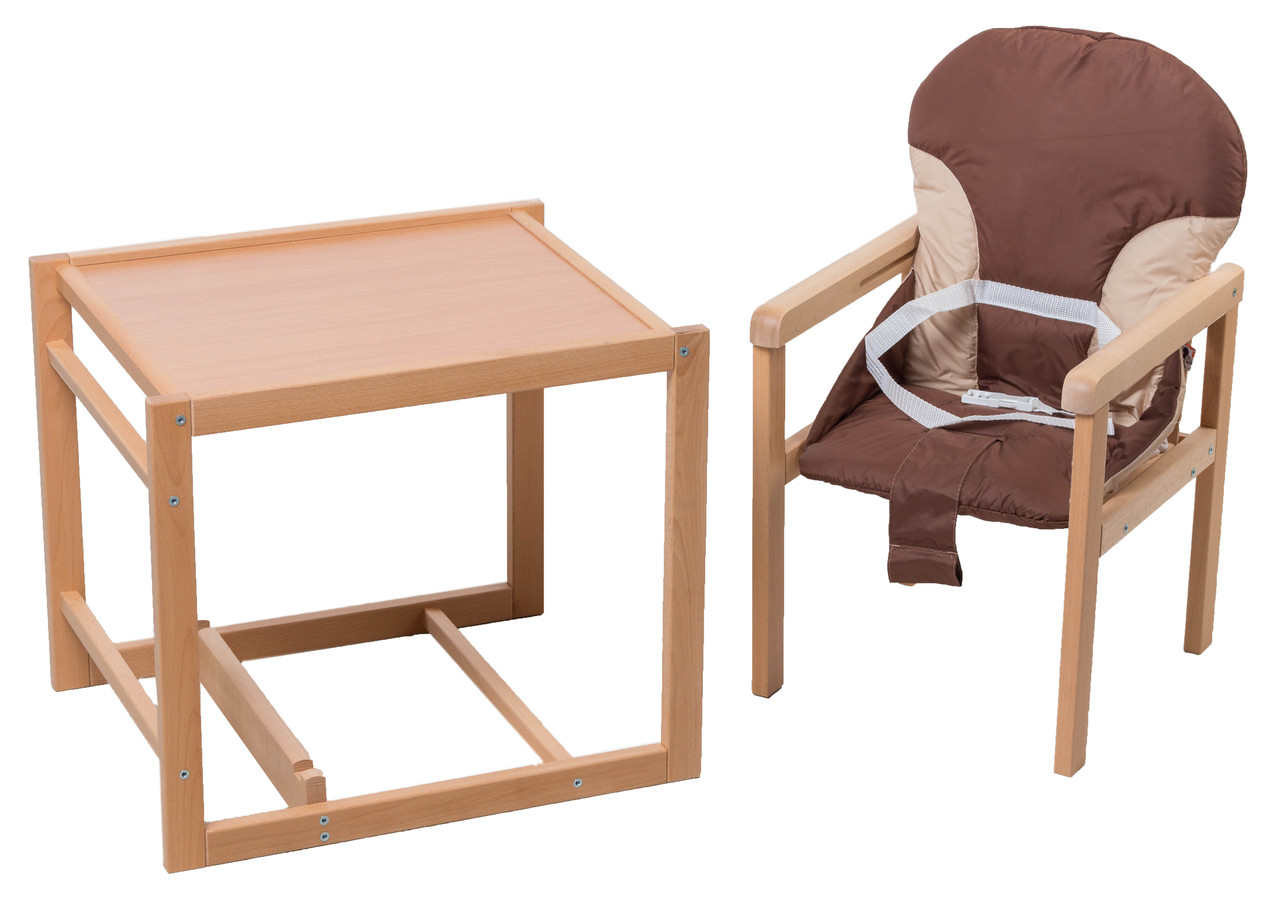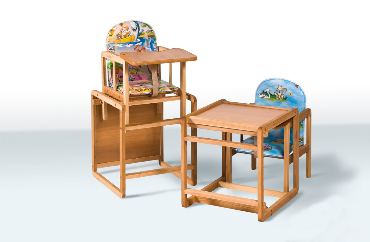 C'est la meilleure option pour les plus jeunes enfants qui apprennent à s'asseoir. Une fois assemblé, c'est une conception assez haute avec un dessus de serrure, qui est pratique à utiliser pour l'alimentation. En forme démontée, c'est une chaise basse avec un plateau et des accoudoirs et une petite table. Souvent, cette conception est équipée de ceintures de sécurité pour que l'enfant ne tombe pas. De plus, le transformateur est conçu pour plusieurs années et permet donc le réglage des tailles.