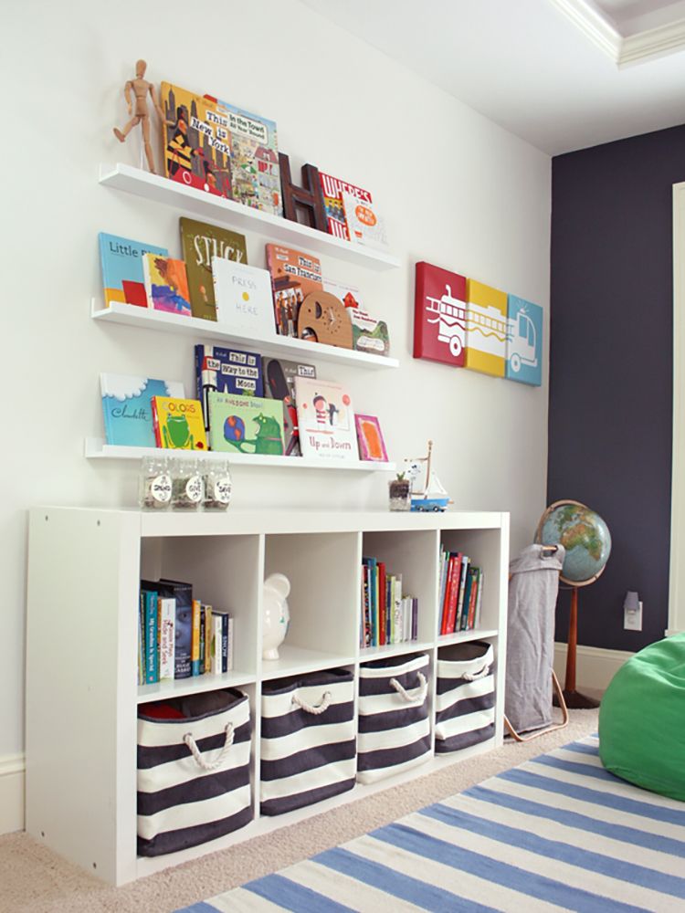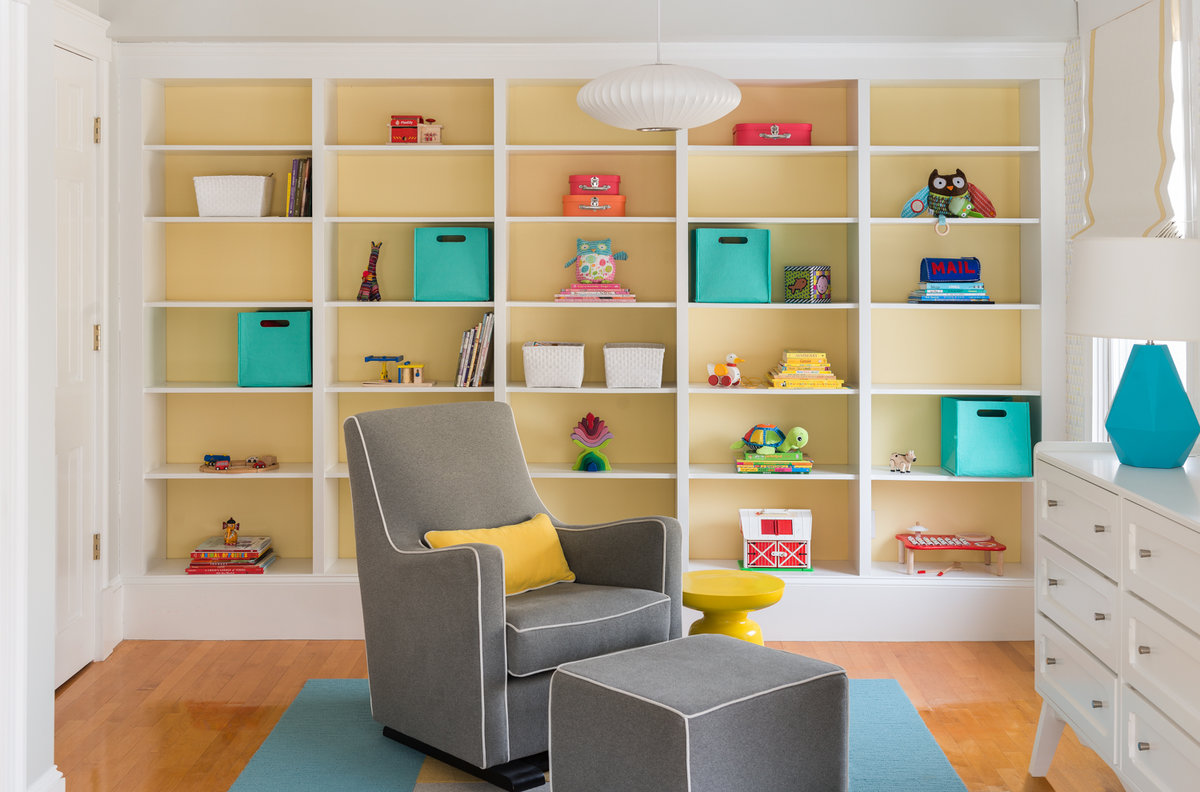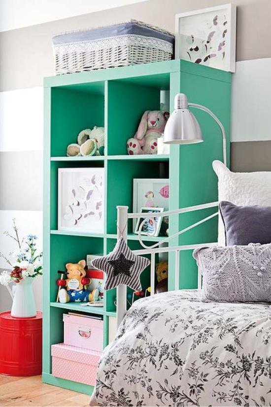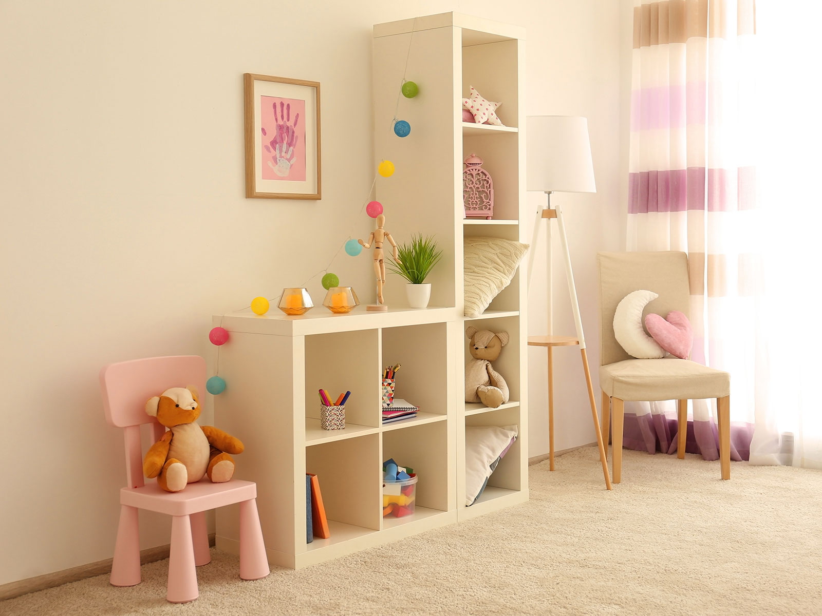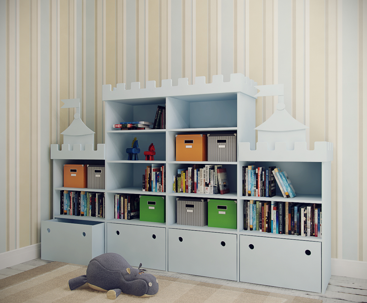 Des étagères peuvent être placées dans différents coins de la chambre des enfants.