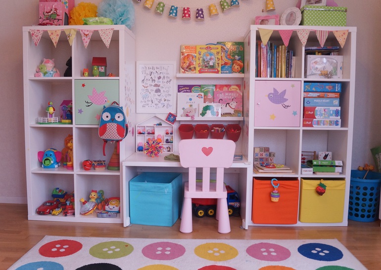Un rack correctement équipé contiendra des jouets, des livres et même certaines choses qui ne rentrent pas dans le placard