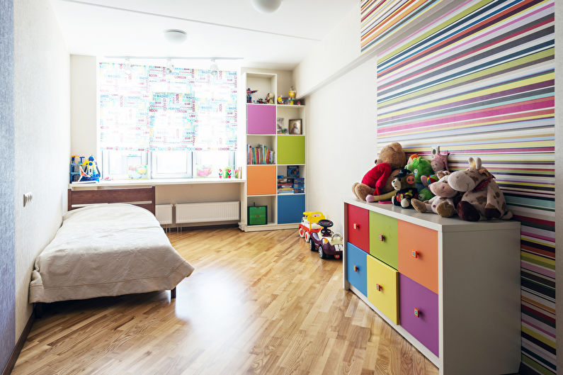 Une palette de couleurs vives peut décorer n'importe quel intérieur de la chambre d'un enfant, lui procurant une excellente humeur