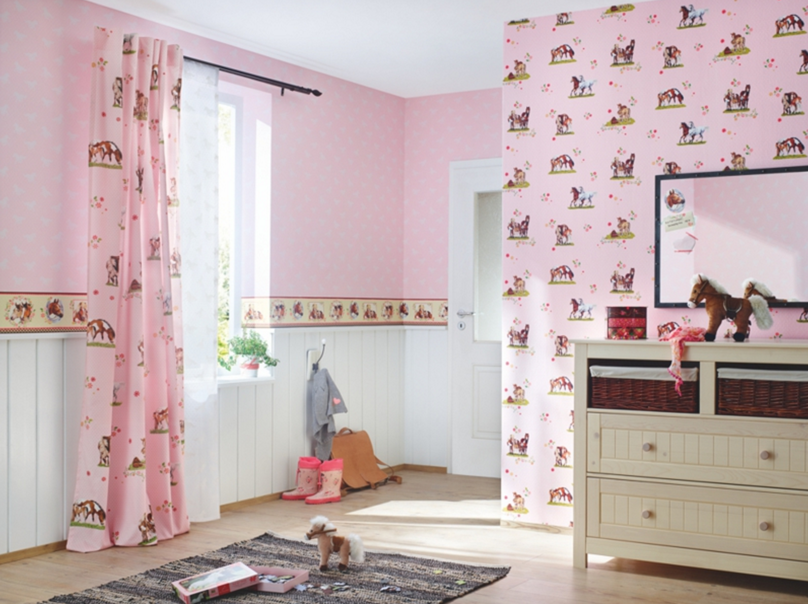 Souvent, l'un des murs est encadré de peintures murales représentant des châteaux de conte de fées, des héroïnes de Disney.