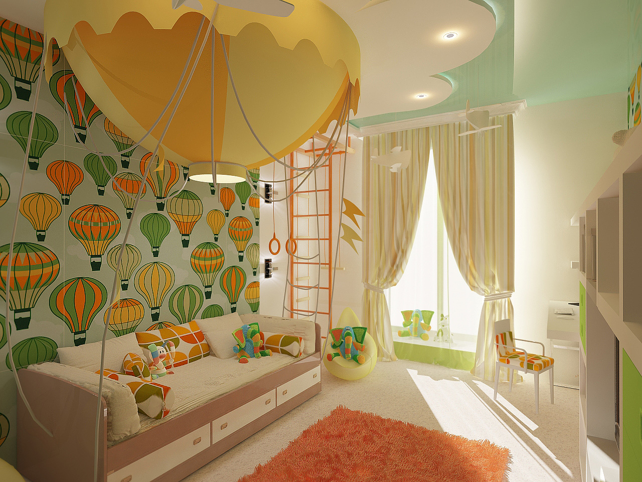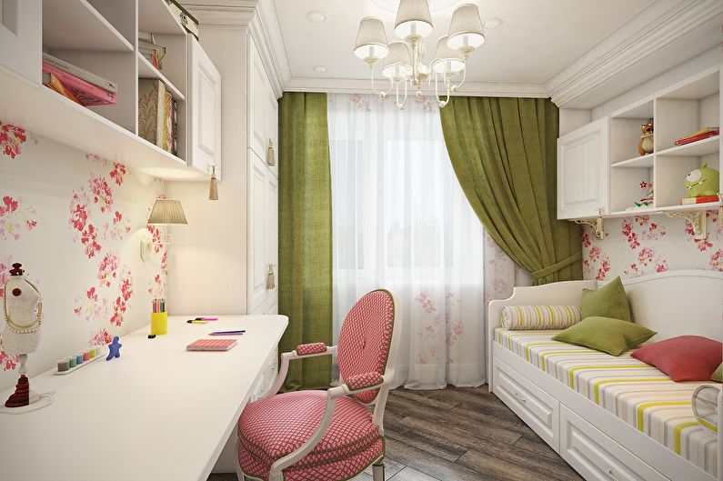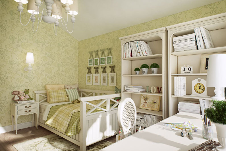La formation.Si la plupart du temps passé à la crèche, l'enfant apprend et fait ses devoirs, cela vaut la peine de choisir une couleur plus calme.