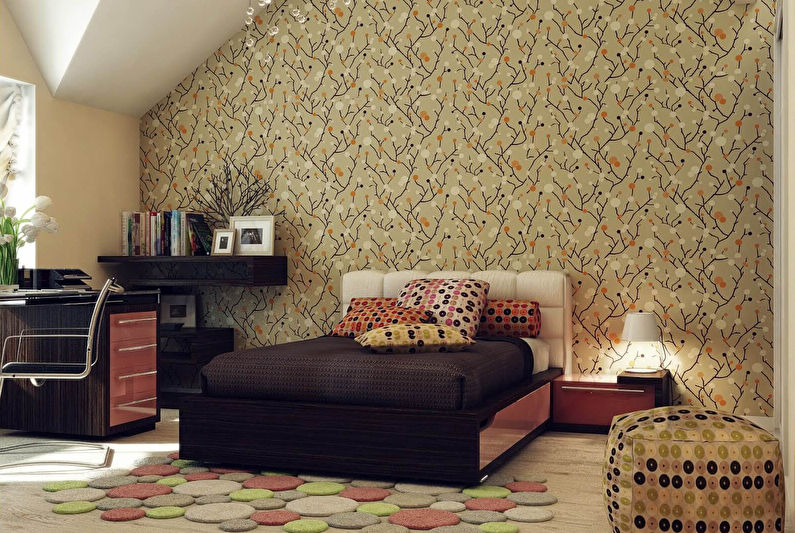 Chambre pour dormir et se détendre. Le décor d'une telle pièce devrait prédisposer à l'apaisement. En conséquence, il est préférable de choisir des papiers peints qui sont des nuances calmes et fraîches du bleu clair au lilas profond.