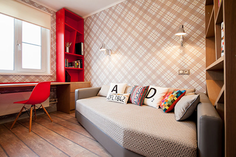 Et bien sûr, n'oubliez pas le côté esthétique du problème. La couleur et le motif du papier peint doivent être harmonieusement combinés avec les meubles, les sols et les textiles dans la chambre des enfants.