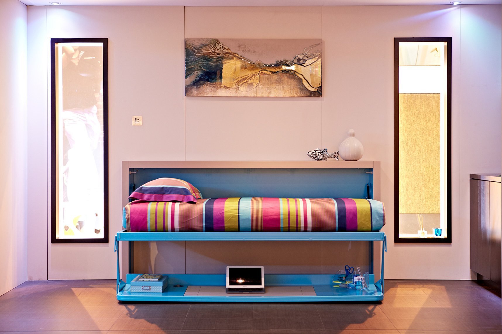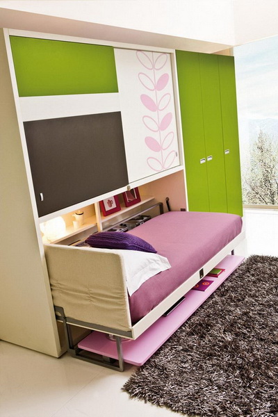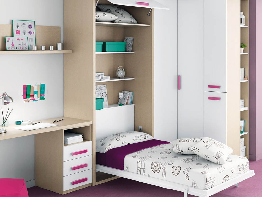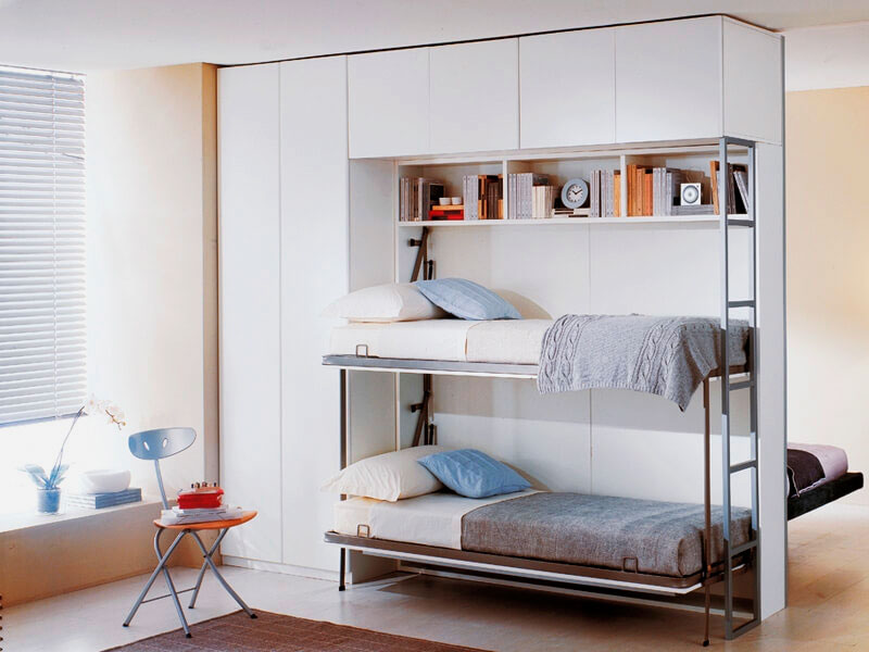 Une armoire transformable avec un lit complet convient à la chambre d'un adolescent