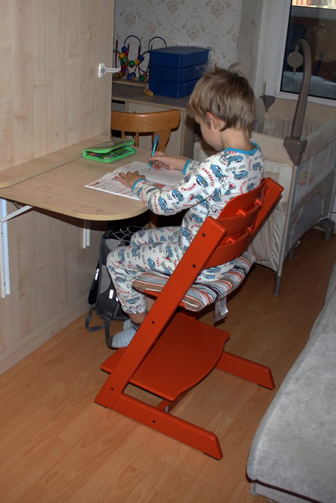 Pour les écoliers vivant dans un petit appartement, une alternative à un bureau encombrant sera une table transformatrice originale pour enfants. Les meubles à hauteur et inclinaison réglables du comptoir aideront à éviter la scoliose et à préserver la vision de l'enfant.