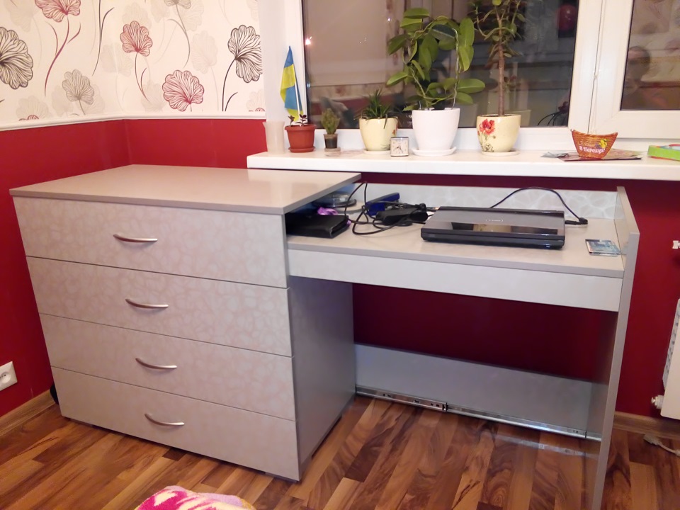 Une commode remplacera un bureau encombrant. Ils produisent des modèles avec des comptoirs coulissants, des tables pivotantes pour les adolescents et des commodes pour changer les bébés.