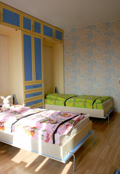 Les modules pliants, les systèmes coulissants sont conçus pour les nourrissons et les enfants plus âgés. Les adolescents peuvent trouver des lits rangés dans un placard, des tables avec des comptoirs transformables et bien plus encore. Les meubles sont créés pour offrir à l'enfant un confort maximum. Pour les étudiants, il y a des places pour les cours, les manuels. Dans un transformateur de chambre pour enfants de petite taille, tout ce qui est nécessaire pour un enfant convient, il y a de la place pour la libre circulation.