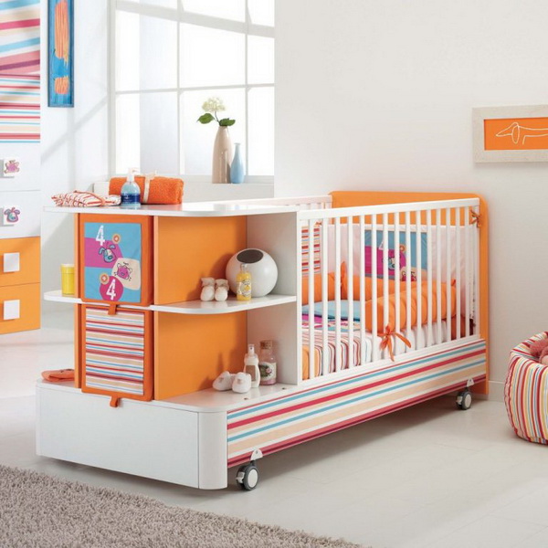 Avec le bébé, un lit transformateur pour enfant se développe pour un petit appartement.