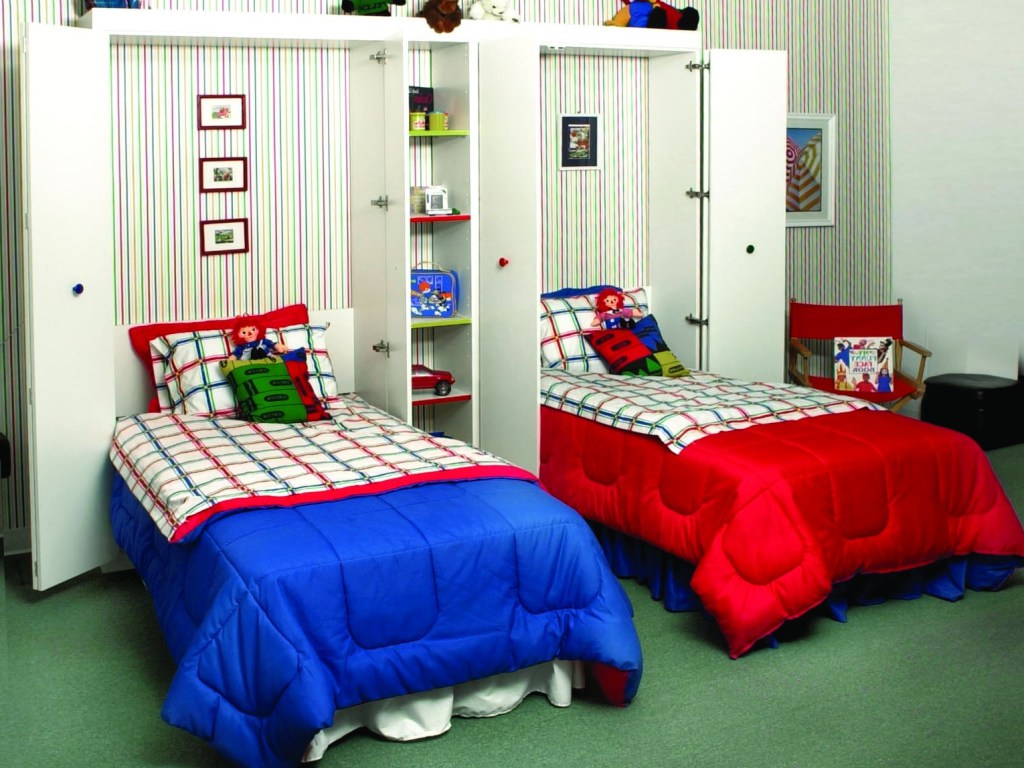 Les modèles à deux étages et les modules à trois niveaux sont pratiques lorsqu'il y a deux enfants. Un design diversifié propose des modèles intéressants pour les jumeaux et les enfants d'âges différents. Les armoires-lits pliants doubles sont équipés de matelas orthopédiques. Il existe des options simples à clapet avec un tiroir spacieux pour les accessoires de couchage.