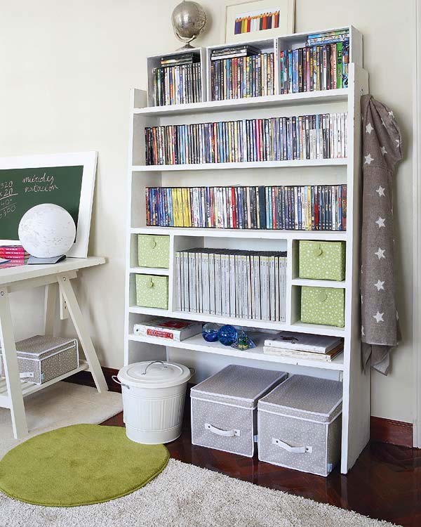 Sur le tapis, un sac de chaise, il peut y avoir un décodeur avec une télévision ou une petite étagère avec des jouets. Les meubles modernes pour les jouets et les livres dans la chambre des enfants d'un écolier peuvent être inhabituels, ils peuvent même être un coffre cool.