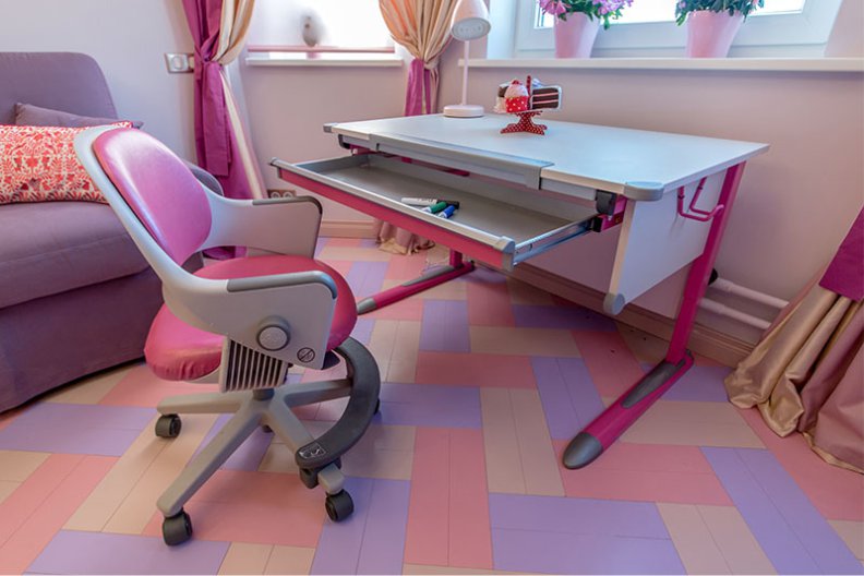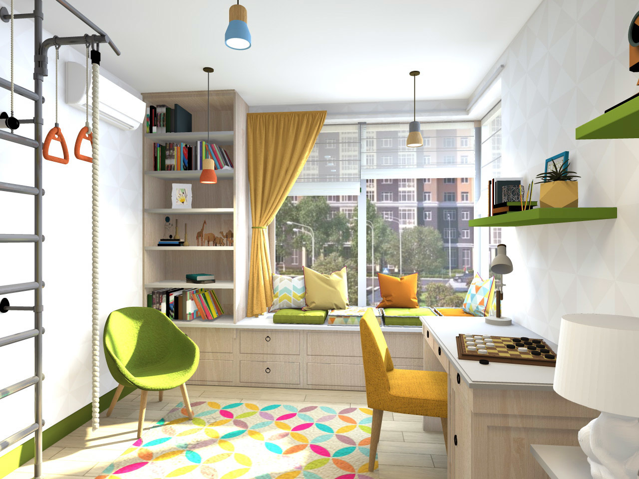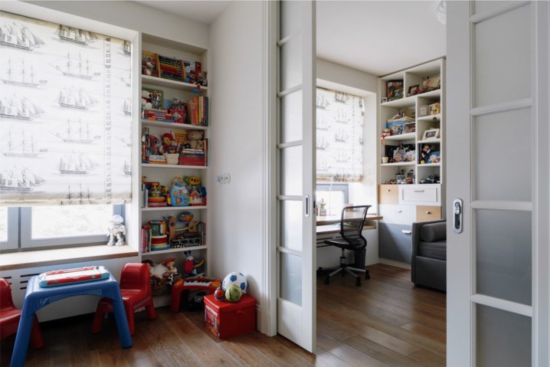 Il est préférable de placer l'aire de jeu derrière le dos de l'enfant assis au bureau: c'est-à-dire pour qu'il, assis aux cours, ne voit pas les jouets et ne soit pas distrait par eux. L'aire de jeu peut être petite.Pour la zoner, utilisez un tapis lumineux: visuellement, vous séparez la zone et la rendez lumineuse et indépendante.