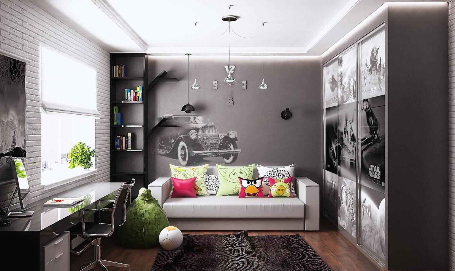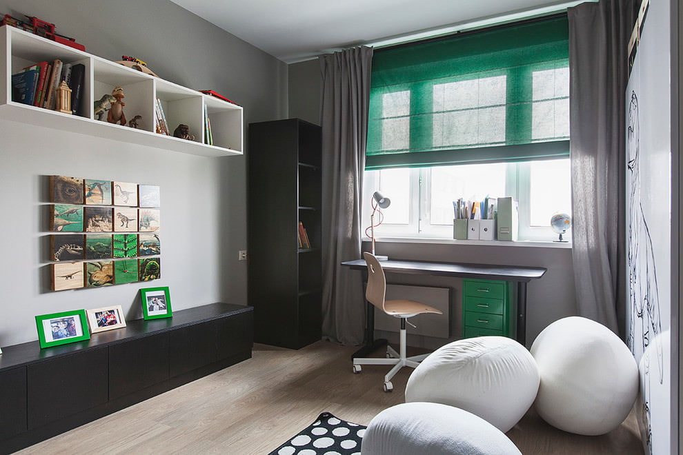 Regardez les nombreuses photos d'exemples de chambres pour écoliers. Faites attention non seulement à la décoration intérieure, mais aussi aux décisions de conception: comment le problème de la division en zones, comment le mobilier est organisé. Essayez d'imaginer dans votre imagination comment les meubles pour l'enfant seront disposés dans votre appartement, et continuez!