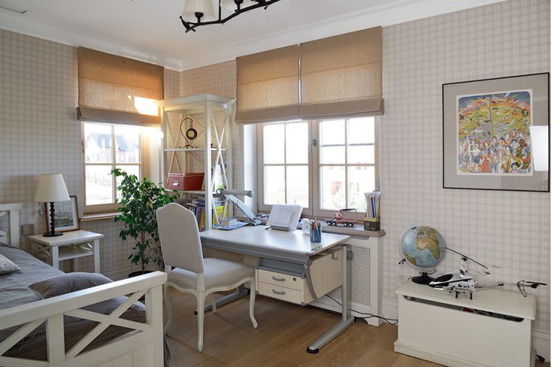 - Il est conseillé de placer le bureau «face» à la fenêtre, mais en même temps, il est souhaitable que l'enfant ne s'assoit pas dos à la porte d'entrée: cela développera de l'anxiété, ce n'est pas très confortable.