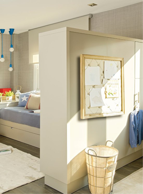 - Vous ne pouvez pas mettre l'armoire contre le mur, mais la placer au milieu de la pièce (si les dimensions le permettent), la divisant ainsi en zones distinctes.