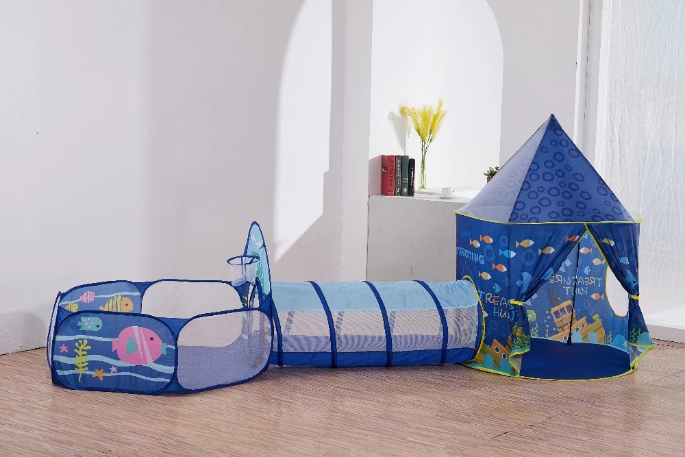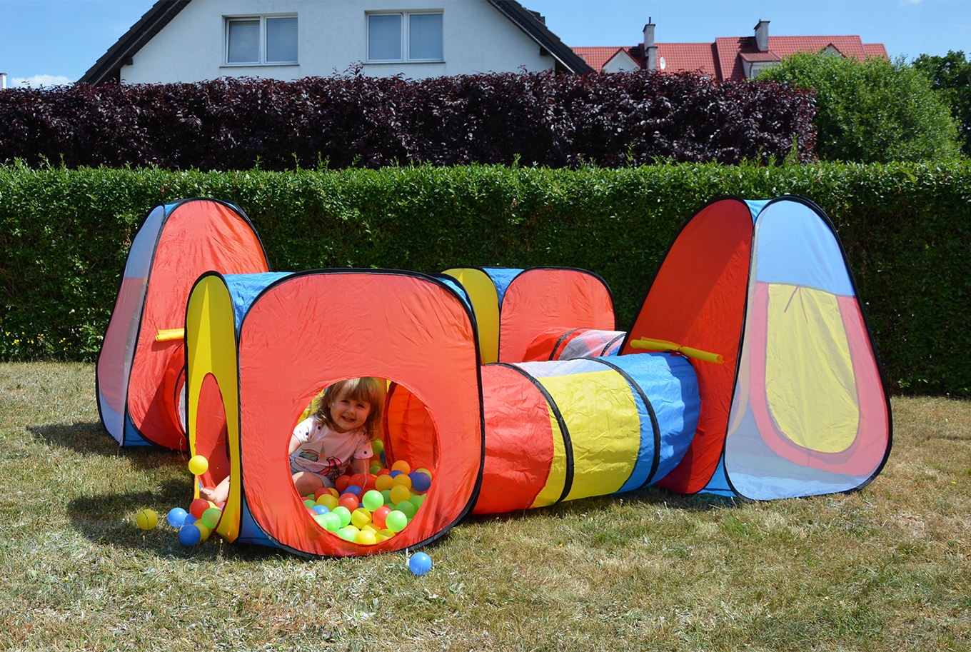 De nombreux modèles populaires de maisons de tentes ont un tunnel à travers lequel ils entrent à l'intérieur. Les tunnels sont disponibles en différents diamètres et longueurs, leur choix dépend de l'âge et du nombre estimé d'enfants qui l'utiliseront. À l'intérieur du tunnel, il y a généralement des fenêtres à fentes pour un meilleur éclairage, qui sont fermées et ouvertes avec une fermeture éclair ou un velcro. Les enfants apprécieront certainement cette option.