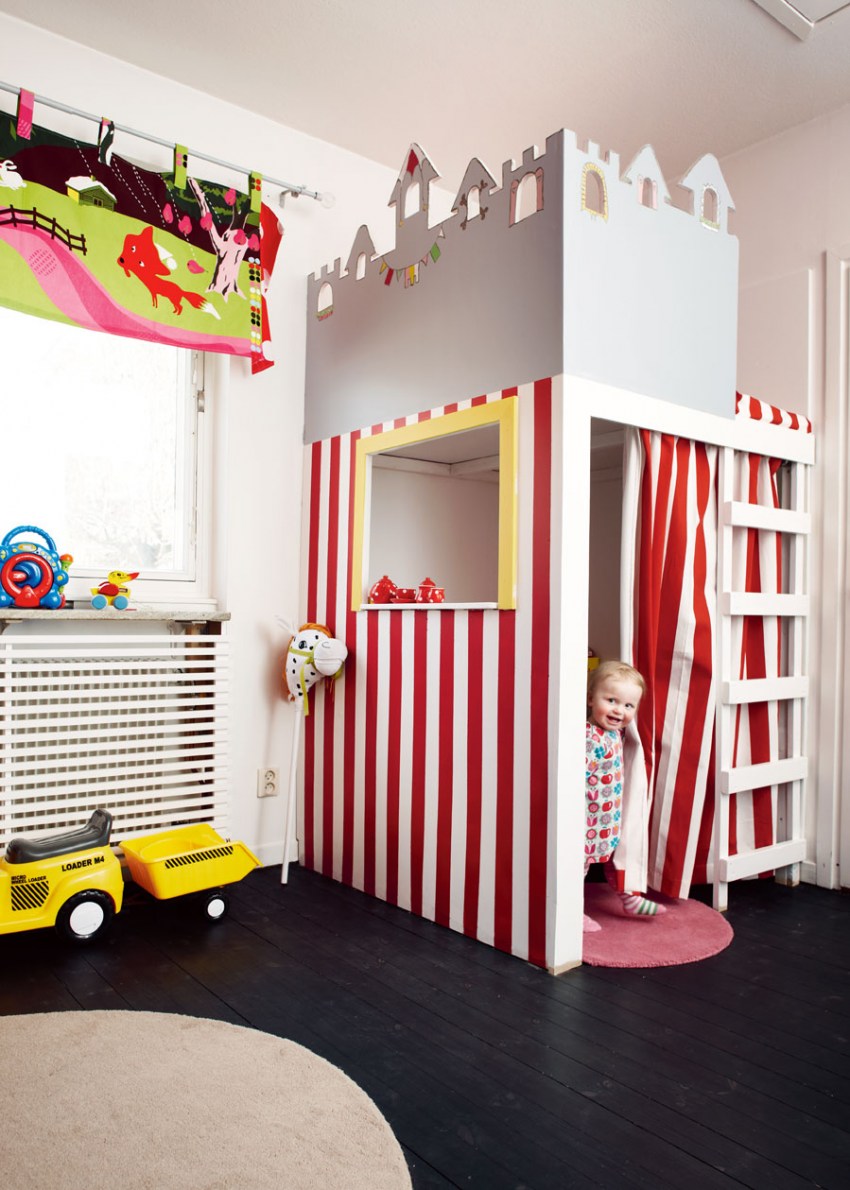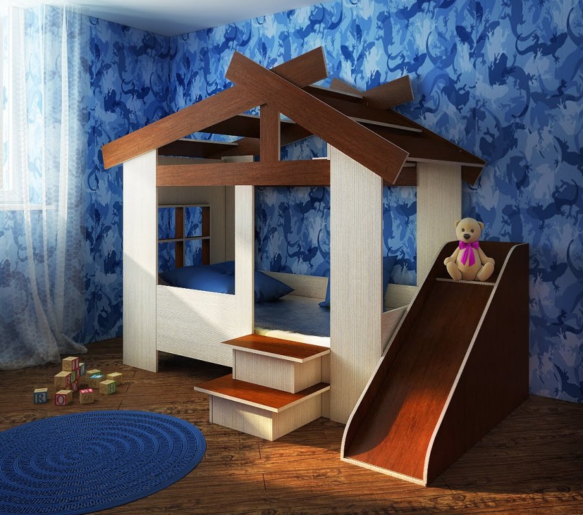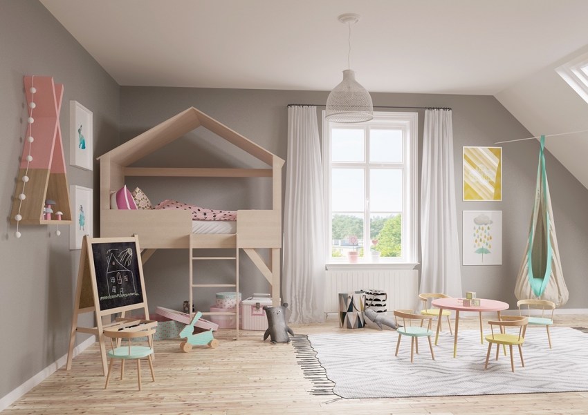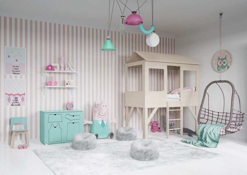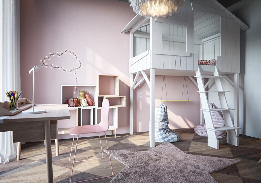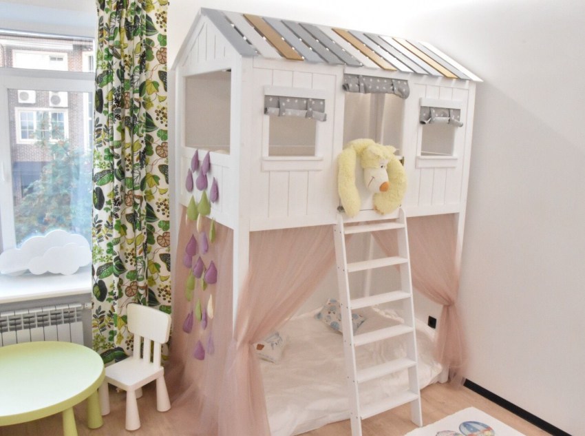 Vous trouverez ci-dessous des photos de la décoration intérieure d'une chambre d'enfants avec une maisonnette.