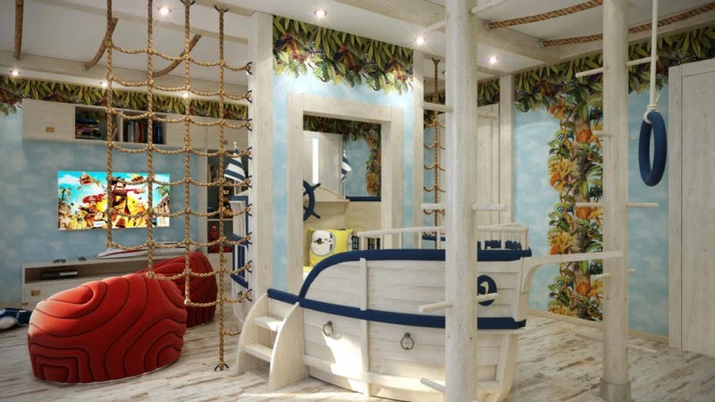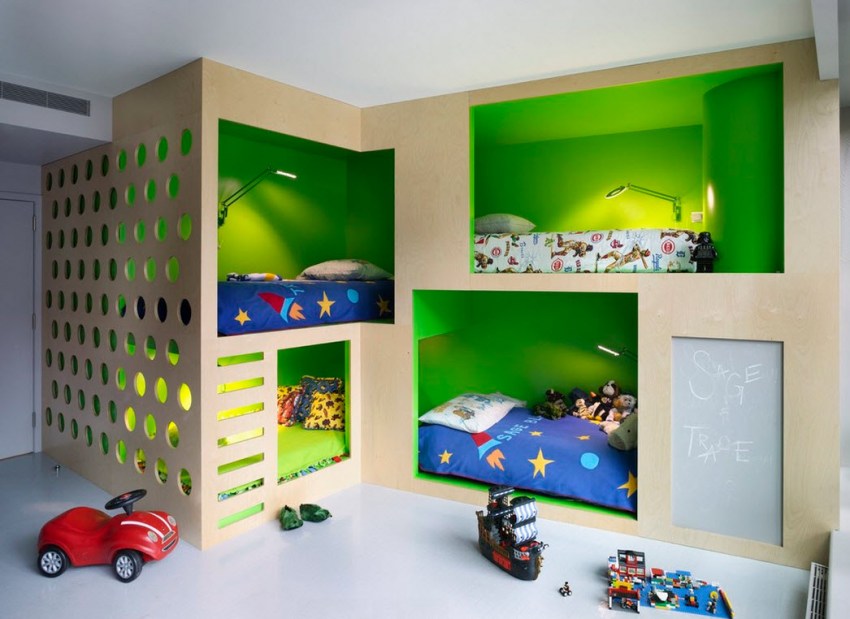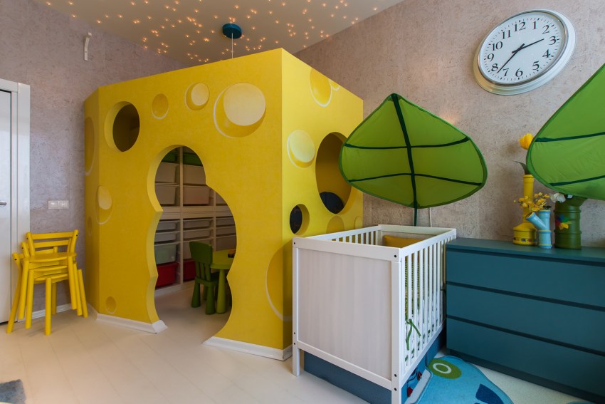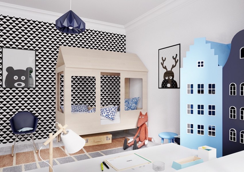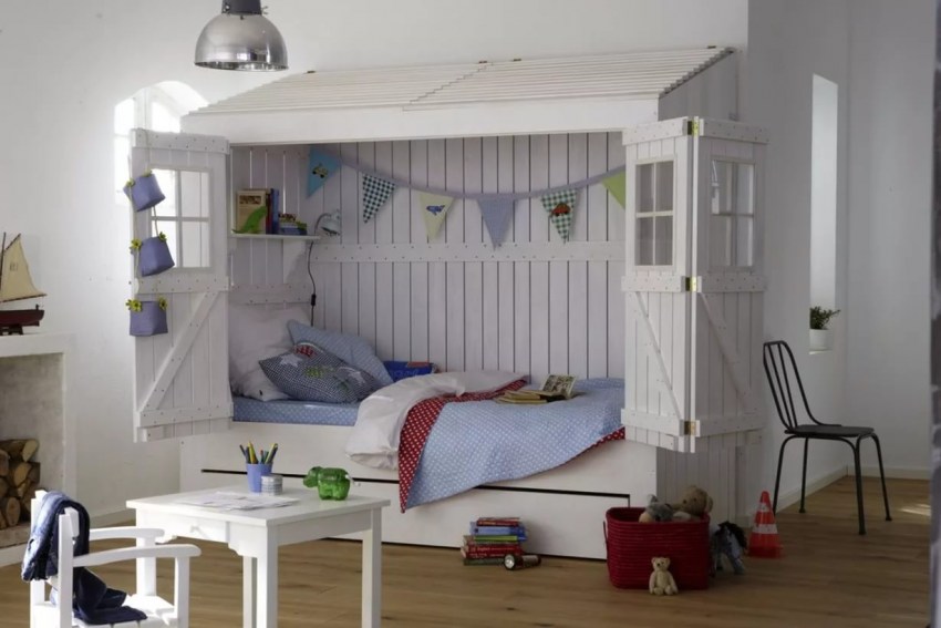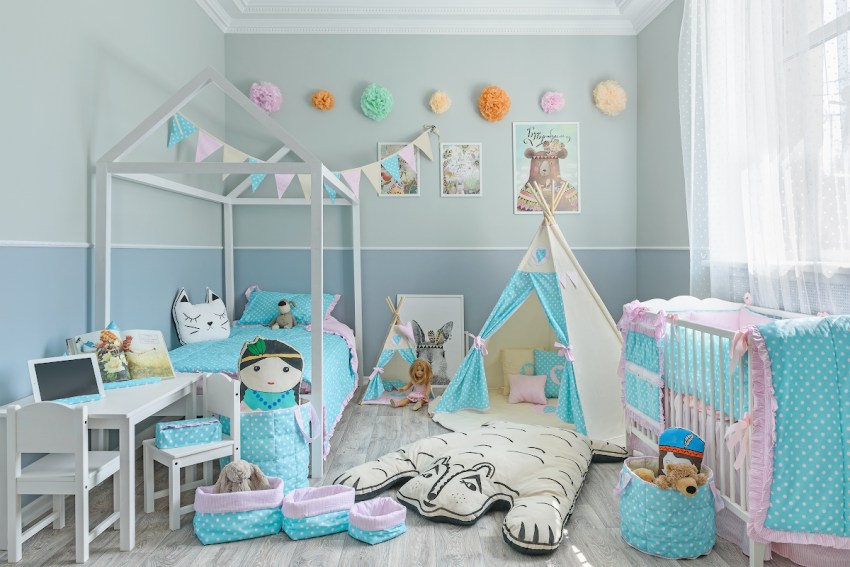 Vous trouverez ci-dessous des photos de la décoration intérieure d'une chambre d'enfants avec une maisonnette.