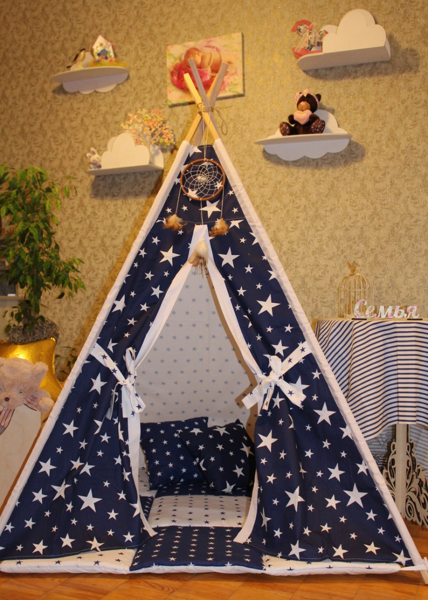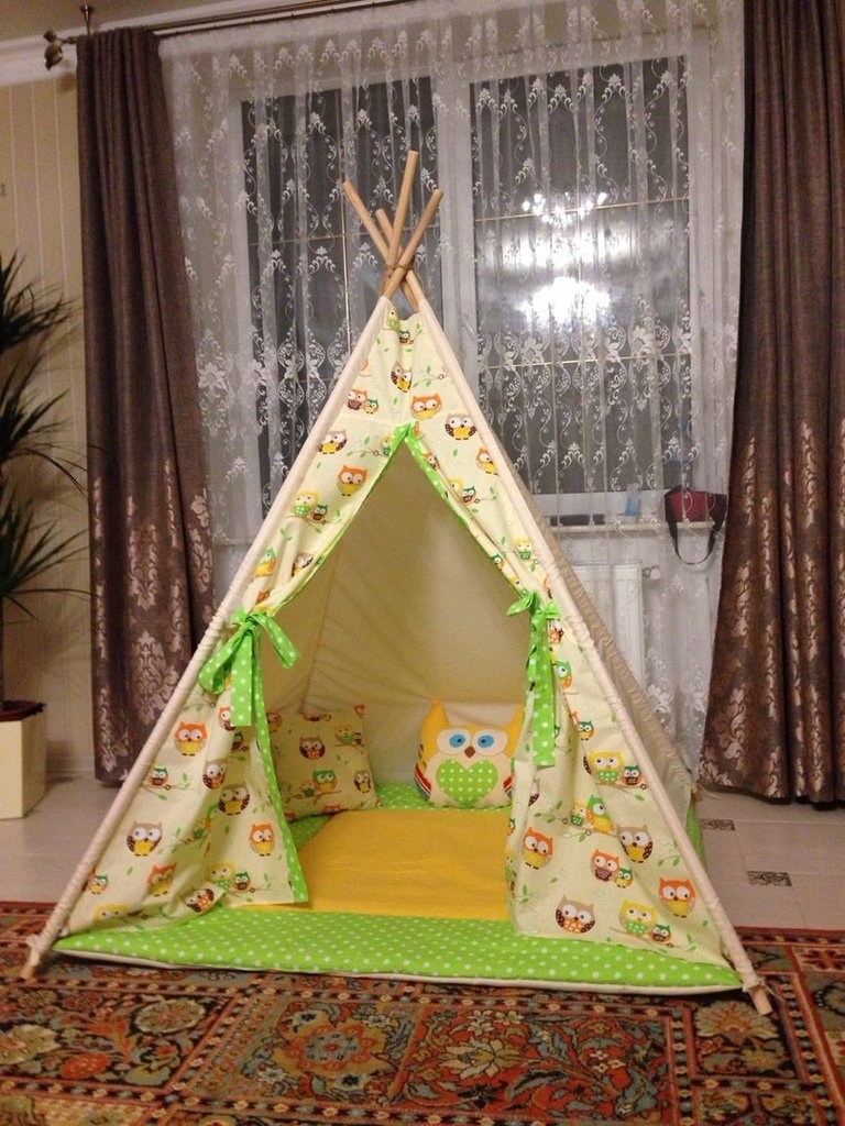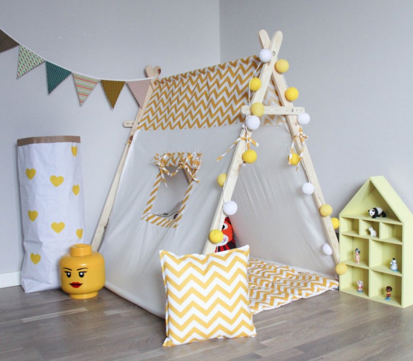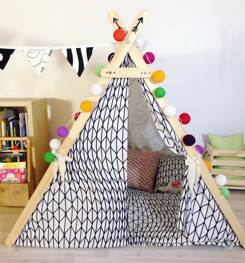 Les «wigwams» à la mode récemment, en plus de tout le reste, sont très élégants à l'intérieur et peuvent servir de décoration pour une chambre d'enfant.