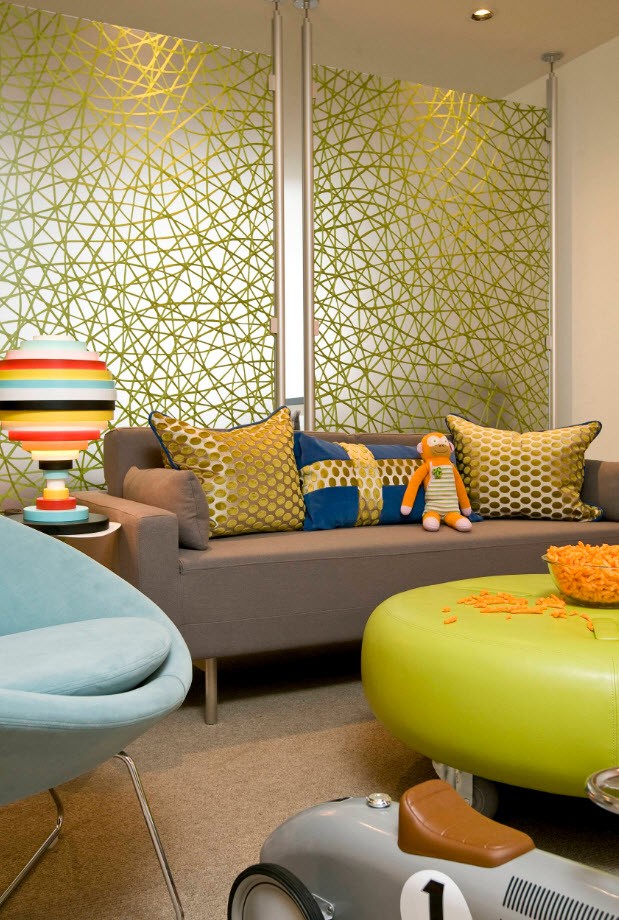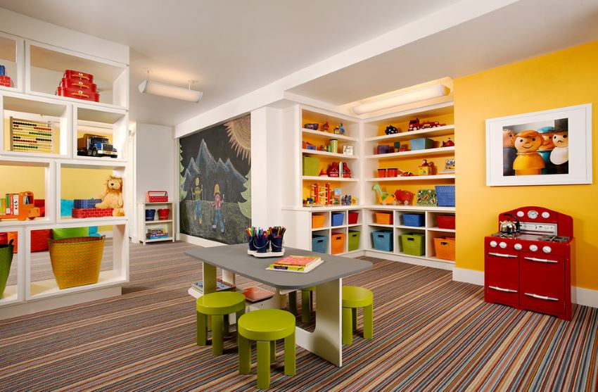 À l'aide de tapis dans la salle, vous pouvez créer un espace pratique pour les jeux pour enfants, allouer séparément une couchette et une zone pour les cours.