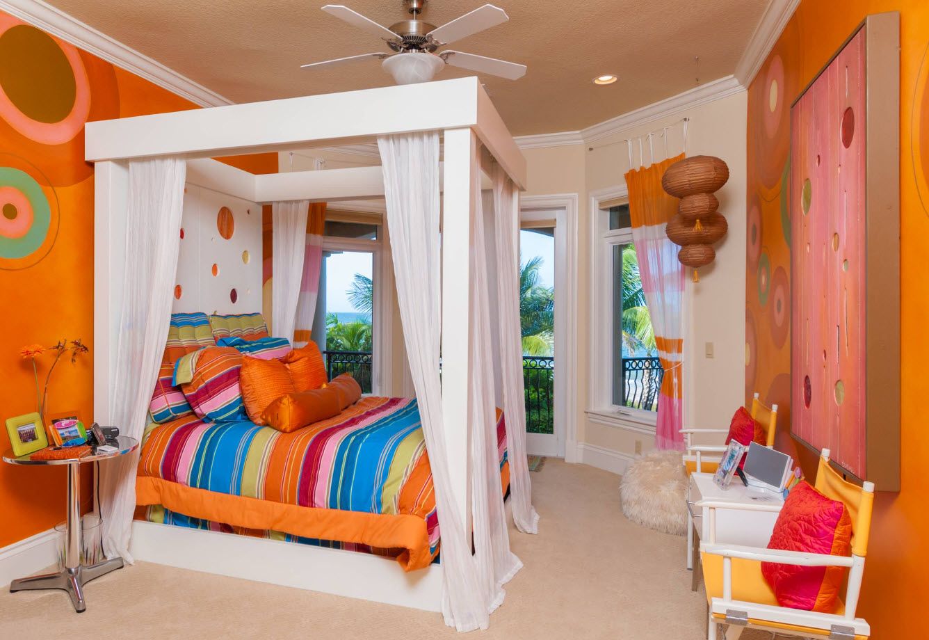 Les jeunes filles préfèrent les personnages de dessins animés et les contes de fées qui développent la fantaisie. Pour une fille, des nuances chaudes en combinaison avec des couleurs vives, des ornements et des papillons sont préférables.