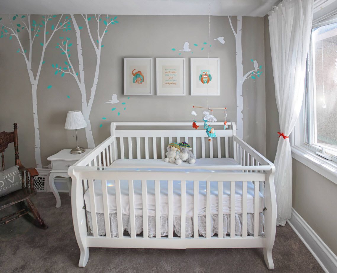 Pour les enfants, la combinaison de couleurs vives et de nuances délicates doit être équilibrée, une grande quantité de rouge, d'orange et de bleu peut affecter négativement le psychisme. Il est préférable de choisir des tons neutres légers: beige, marron et gris comme ton principal et d'utiliser des couleurs vives dans les dessins et les ornements. De plus, il n'est pas recommandé d'utiliser de la couleur blanche dans la pépinière, cela disperse l'attention de l'enfant pendant les cours, et toute petite tache pendant le nettoyage peut causer beaucoup de problèmes.
