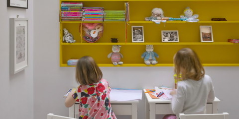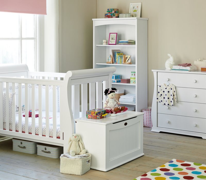 S'il n'y a pas assez d'espace dans la pépinière pour les armoires encombrantes, elles seront remplacées avec succès par des étagères suspendues et des mezzanines