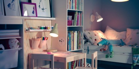 Il existe une règle non écrite: plus la pièce est petite, plus l'intérieur doit être lumineux. Lors de la conception d'une pépinière, il est préférable de faire un éclairage de zone. Illuminez bien la zone d'étude, de dessin, d'autres activités qui nécessitent une fatigue oculaire. À quai le soir, vous avez besoin de crépuscule.