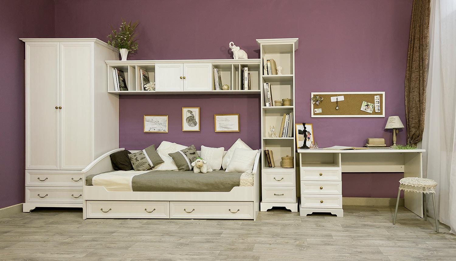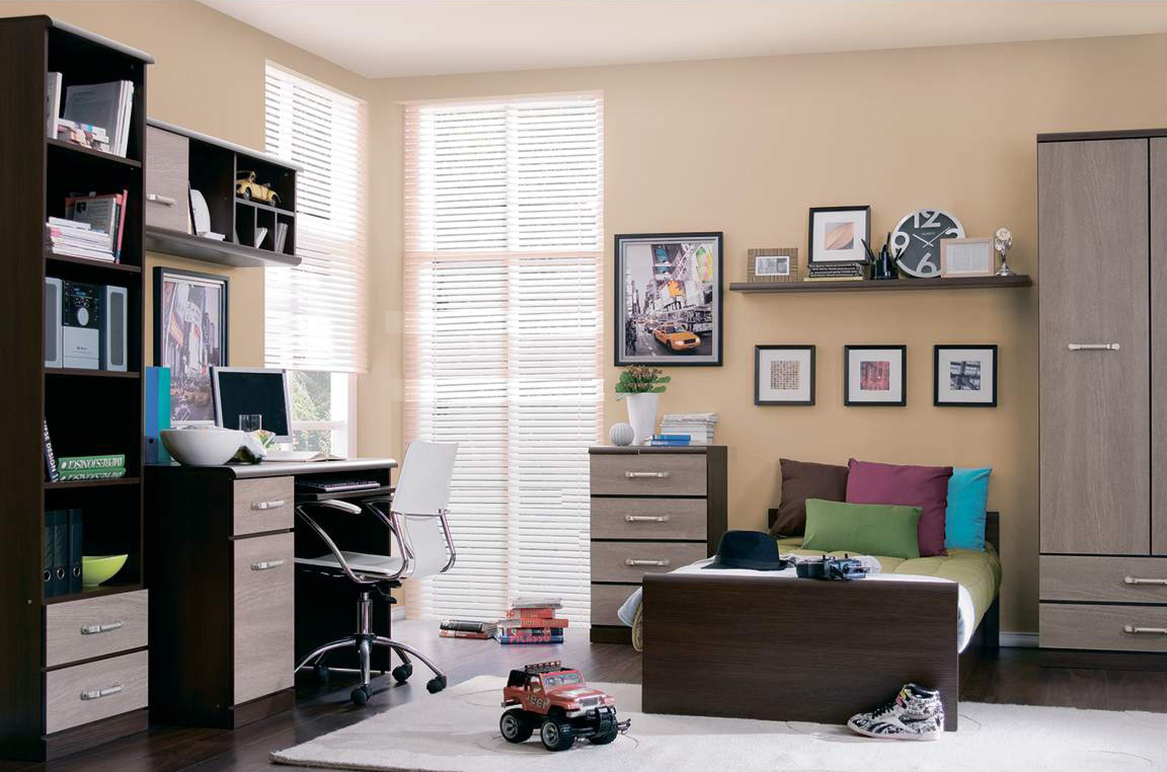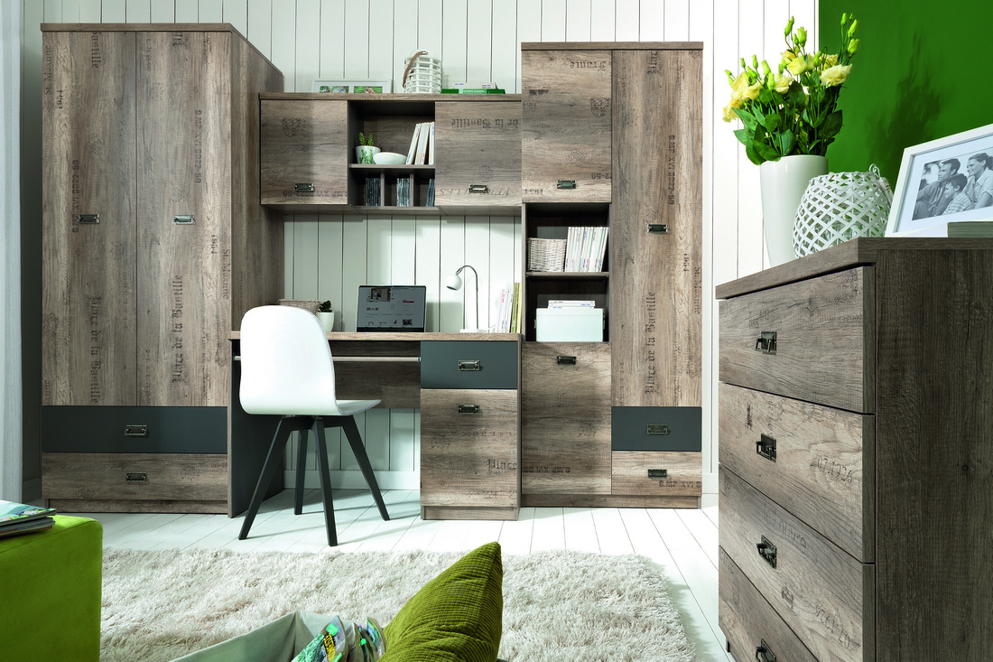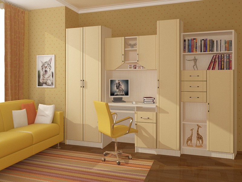 Les adolescents préfèrent le minimalisme, les couleurs modérées. Décorez indépendamment les meubles et les murs avec des images, des affiches. Dans la chambre des filles, il devrait y avoir un module avec un grand miroir, une armoire ou une commode avec un grand nombre de compartiments.