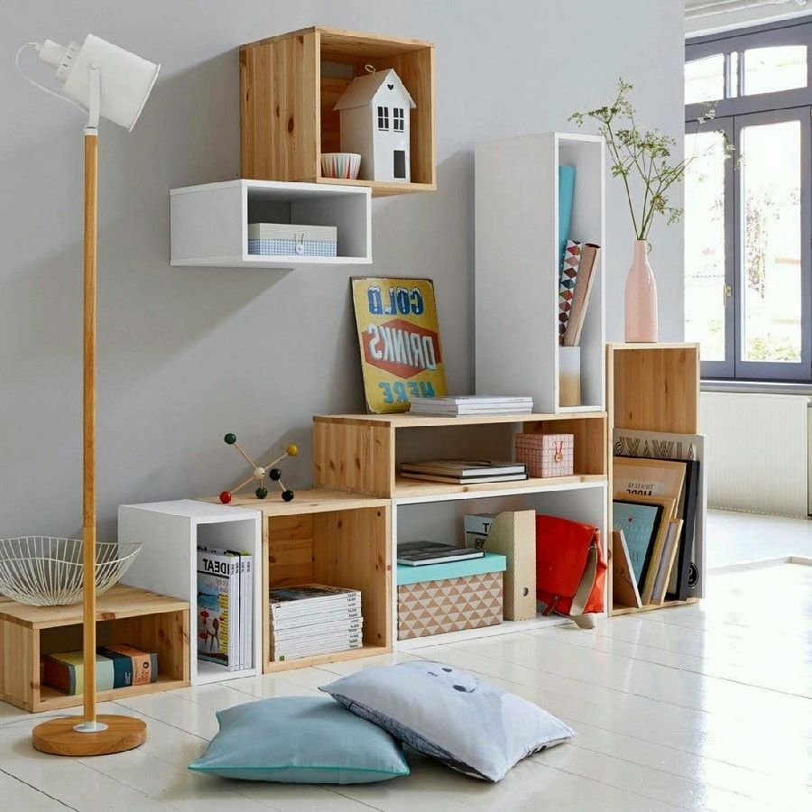 Une combinaison intéressante d'étagères-modules dans une chambre pour un petit enfant