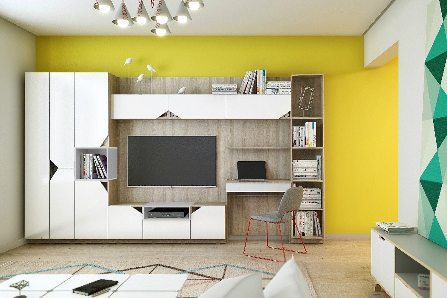 Les systèmes complets pour des projets uniques comprennent jusqu'à 20 éléments intérieurs de fonctionnalités différentes. Tous sont conçus dans un style commun, combinés dans une palette de couleurs. Pour tout espace, vous pouvez combiner un salon avec tout ce dont vous avez besoin.