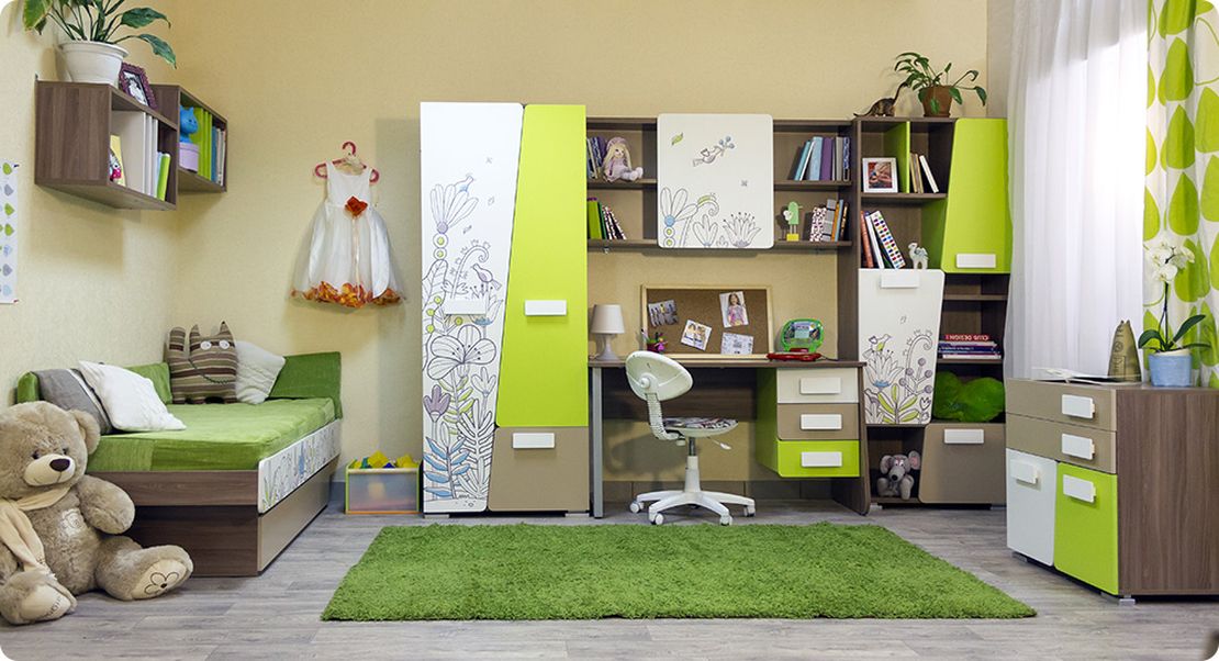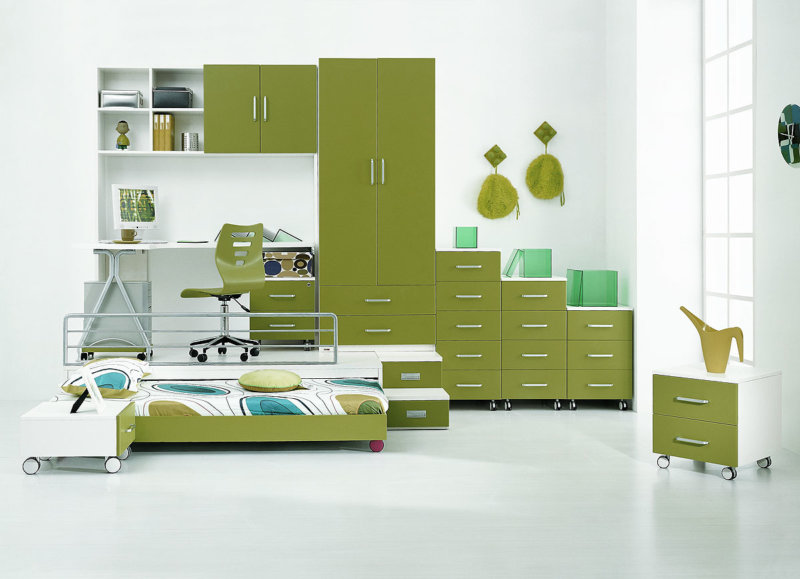 Le mobilier modulaire pour la chambre des enfants a augmenté les exigences en matière de respect de l'environnement, de sécurité. De nombreux meubles sont équipés de roues; un enfant peut les déplacer de manière autonome.