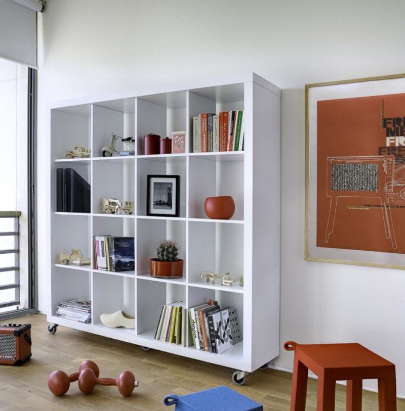 Mobilier modulaire blanc dans une pièce au décor lumineux