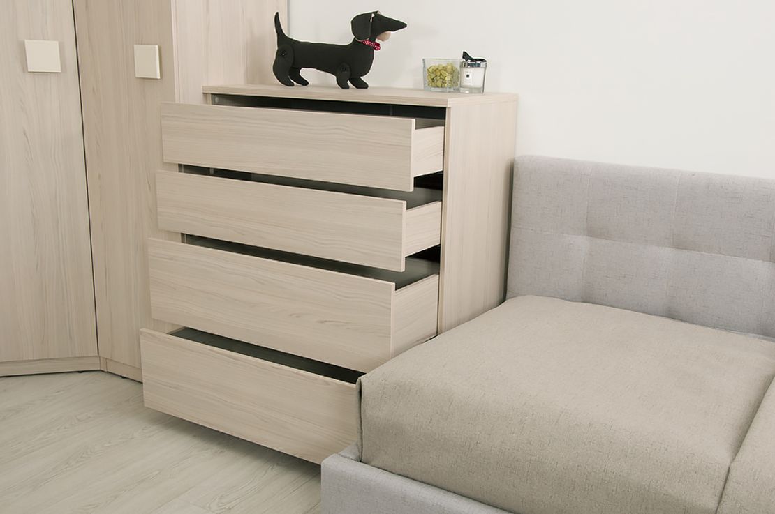 Pour la chambre du garçon dans le style scandinave, une commode avec des tiroirs pratiques convient